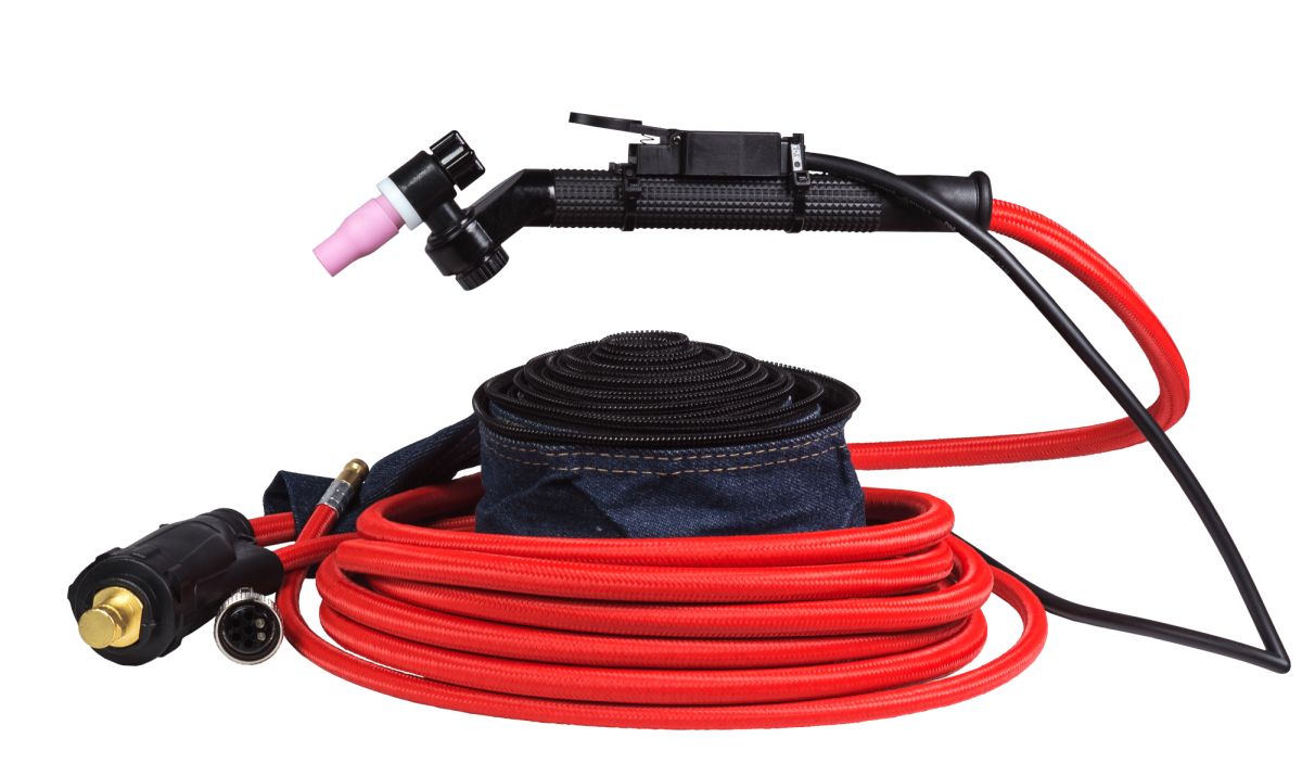 Шланговый пакет состоит из медных жил, силиконовой оплетки и износостойкого защитного слоя, что в совокупности обеспечивает горелке легкость, эластичность и повышенную гибкость. Для повышения износостойкости и долговечности шланговый пакет комплектуется быстросъемной джинсовой оплеткой. Сечение силовых жил обеспечивает хорошую электропроводность и позволяет эксплуатировать горелку на максимальных заявленных нагрузках.