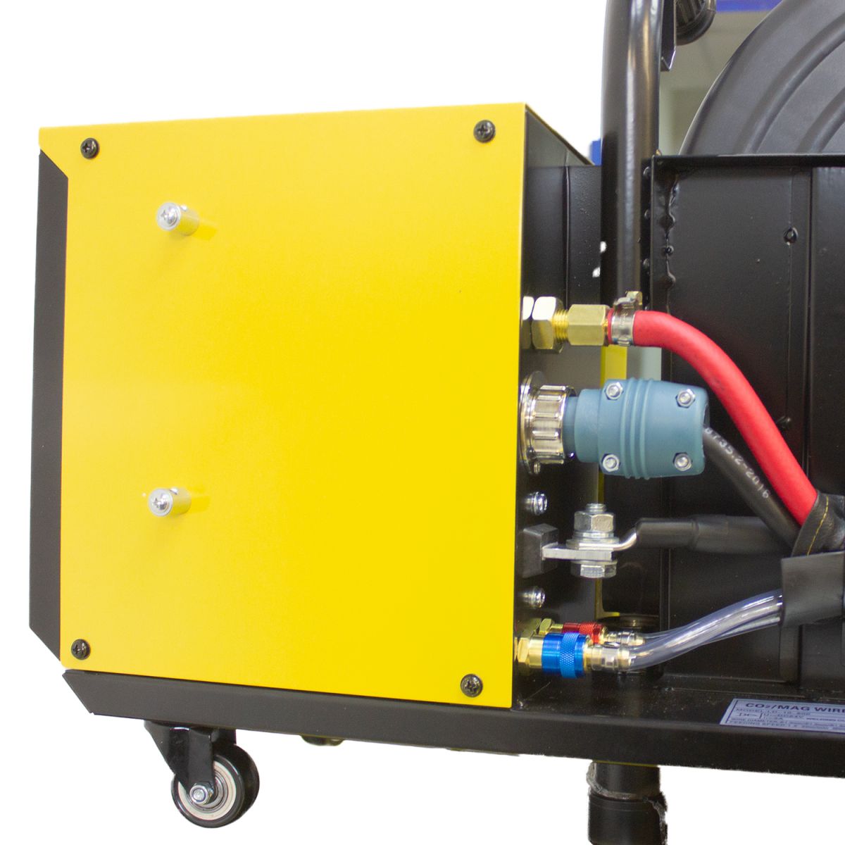 Выносной подающий механизм проволоки позволяет производить работы на участке с большим радиусом работ до 50 метров - увеличивая мобильность.