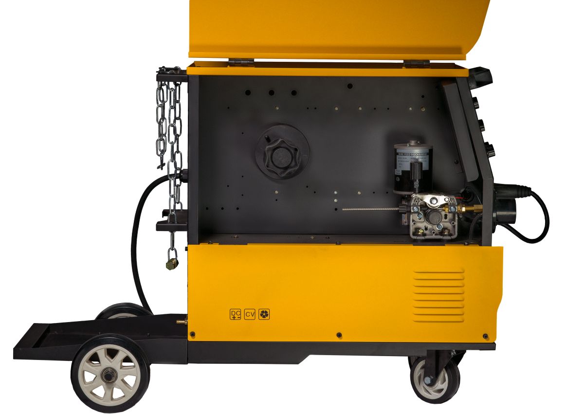 - Специальное исполнение металлического корпуса с тележкой с возможностью легкой транспортировки аппарата и балона с защитным газом по цеху или сварочному участку;