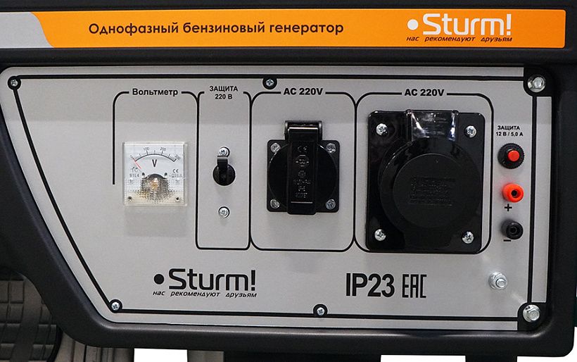 Панель управления оснащена контрольным вольтметром, двумя пыле-влагозащищенными розетками переменного тока 220В/16А с автоматическими крышками и клеммным выходом постоянного тока 12В/ 5,0 для универсального обеспечения электропитания потребителей различного класса.