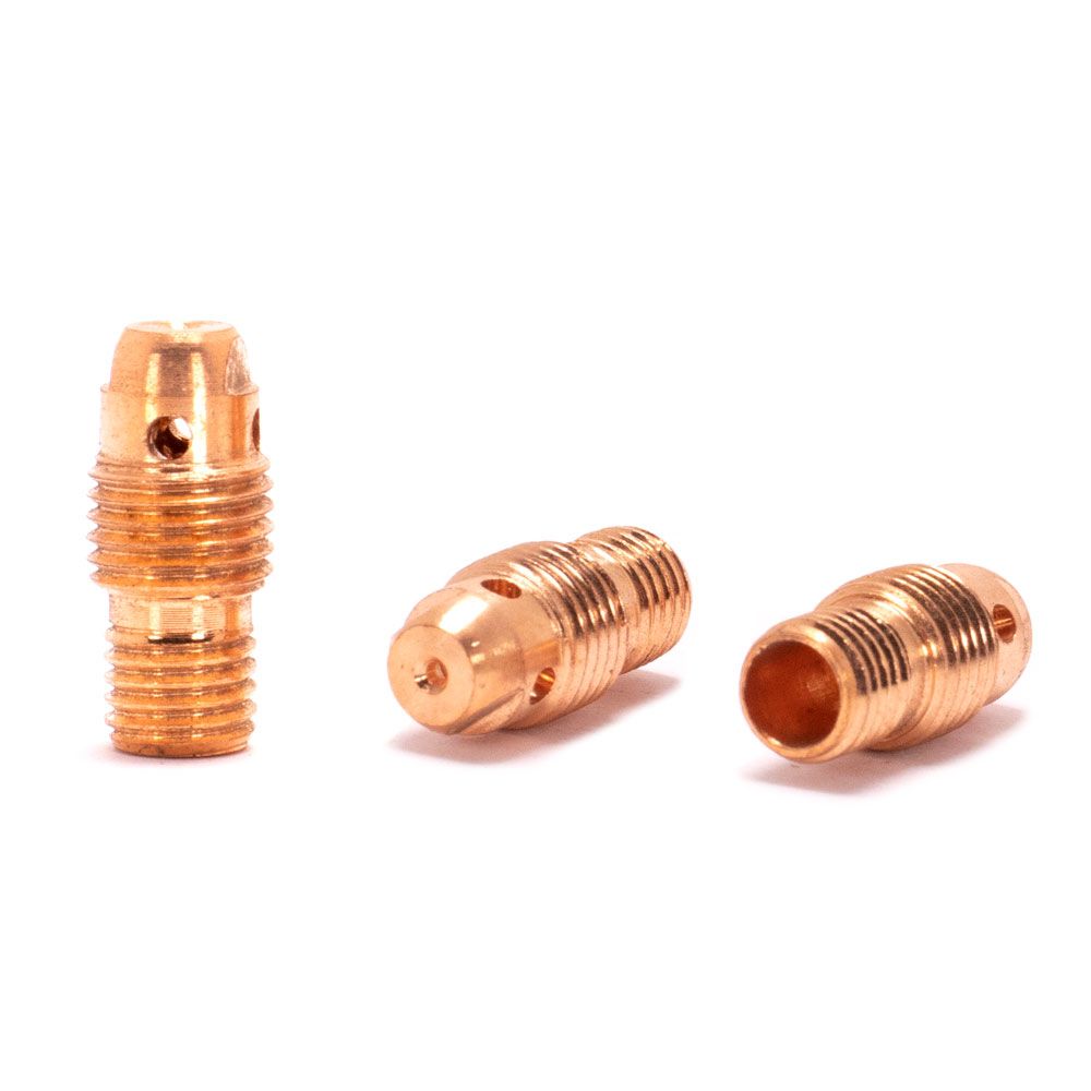 Держатель цанги – устройство для крепления цанги в сопле аргонодуговой горелки. С помощью отверстий в цангодержателе защитный газ во время TIG сварки подаётся к сварочной ванне и защищает её от вредного воздействия кислорода.