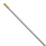 Вольфрамовые электроды WL-15 диаметром 3,0 мм - лантанированный вольфрам (цветовой признак - золотистый цвет). Применяется при сварке на переменном и постоянном токе, химическое соединение LaO2, содержание окисной добавки - 1,2-1,8%. Электроды из сплава вольфрама с оксидом лантана имеют очень легкий первоначальный запуск дуги, низкую склонность к прожогам, устойчивую дугу и отличную характеристику повторного зажигания дуги. Добавление 1,5% оксида лантана увеличивает максимальный ток, несущая способность электрода примерно на 50% больше для данного типоразмера при сварке на переменном токе, чем чисто вольфрамового. По сравнению с цериевыми и ториевыми, лантановые электроды имеют меньший износ рабочего конца электрода. Лантановые электроды более долговечны и меньше загрязняют вольфрамом сварной шов. Оксид лантана равномерно распределен по длине электрода, что позволяет длительное время сохранять при сварке первоначальную заточку электрода. Это серьезное преимущество при сварке на постоянном (прямой полярности) или переменном токе от улучшенных источников сварочного тока, сталей и нержавеющих сталей. При сварке на переменном синусоидальном токе рабочий конец электрода должен иметь сферическую форму. Основные свариваемые материалы: высоколегированные стали, алюминий, медь, бронза. Зажигаемость дуги отличная, выдерживает высокую токовую нагрузку. Применяется для плазменной сварки, резки, напыления.