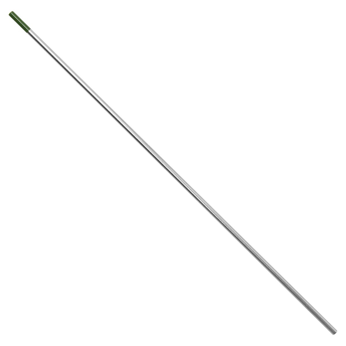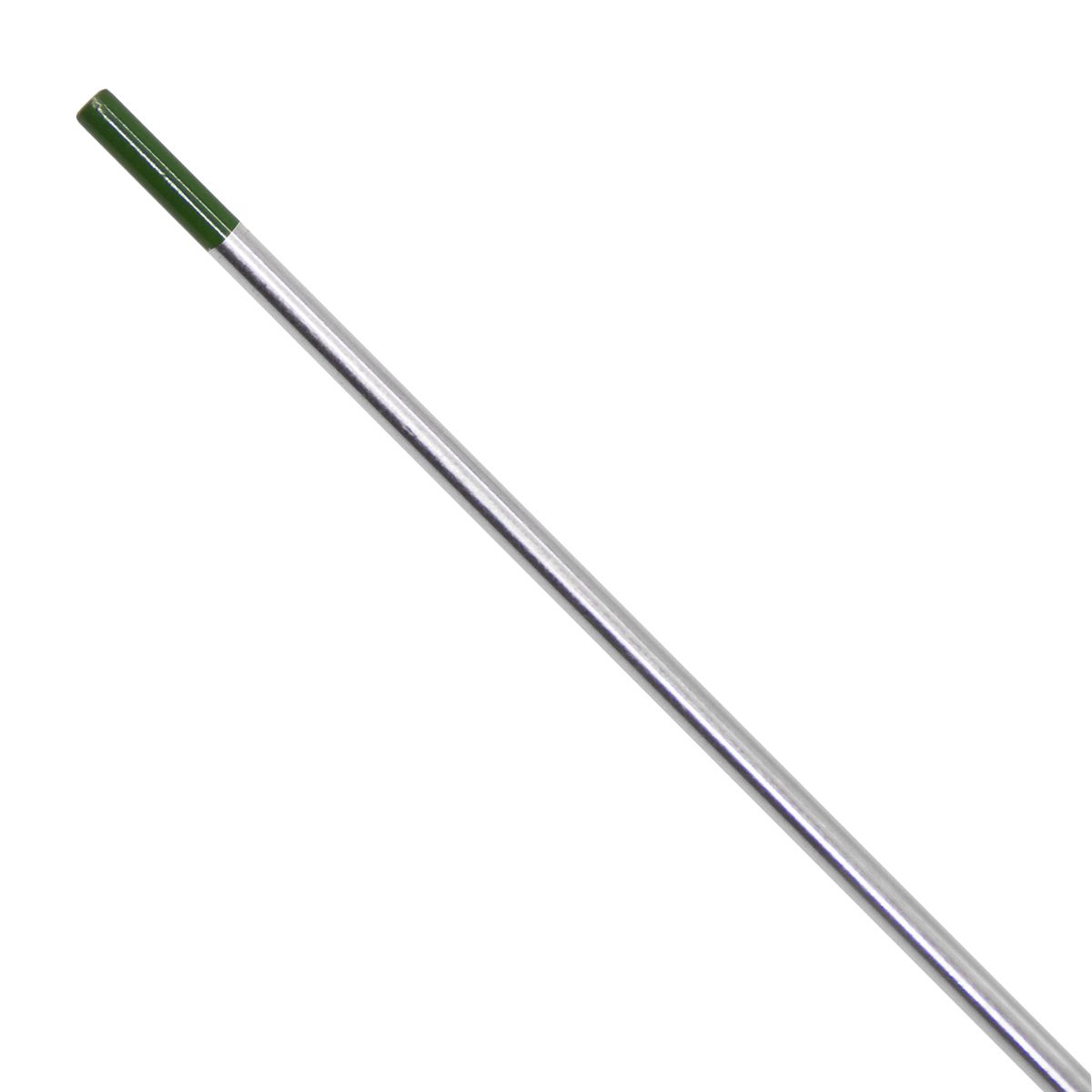 Вольфрамовые электроды WP диаметром 2,4 мм - чисто вольфрамовый электрод (цветовой признак – зеленый цвет) с содержанием вольфрама не менее 99,5%. Используется предпочтительно для сварки на переменном синусоидальном токе, обеспечивает хорошую устойчивость дуги как в аргоновой, так и в гелиевой среде. Из-за ограниченной тепловой нагрузки рабочий конец электрода из чистого вольфрама формируют в виде шарика. Основные свариваемые материалы: алюминий, магний и их сплавы.