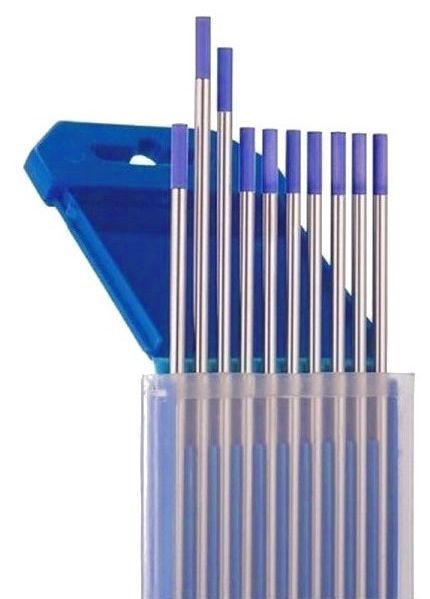 Вольфрамовые электроды WY-20 диаметром 3,2 мм - иттрированый вольфрам (цветовой признак - темно-синий цвет). Отличается высокой стойкостью среди используемых сегодня неплавящихся электродов. Используется для сварки особо ответственных соединений на постоянном токе прямой полярности, содержание окисной добавки - 1,8-2,2%. Иттрированый вольфрам повышает стабильность катодного пятна на конце электрода, вследствие чего улучшается устойчивость дуги в широком диапазоне рабочих токов. Основные свариваемые материалы: сварка особо ответственных конструкций из углеродистых, низколегированных и нержавеющих сталей, титана, меди и их сплавов на постоянном токе (DC).