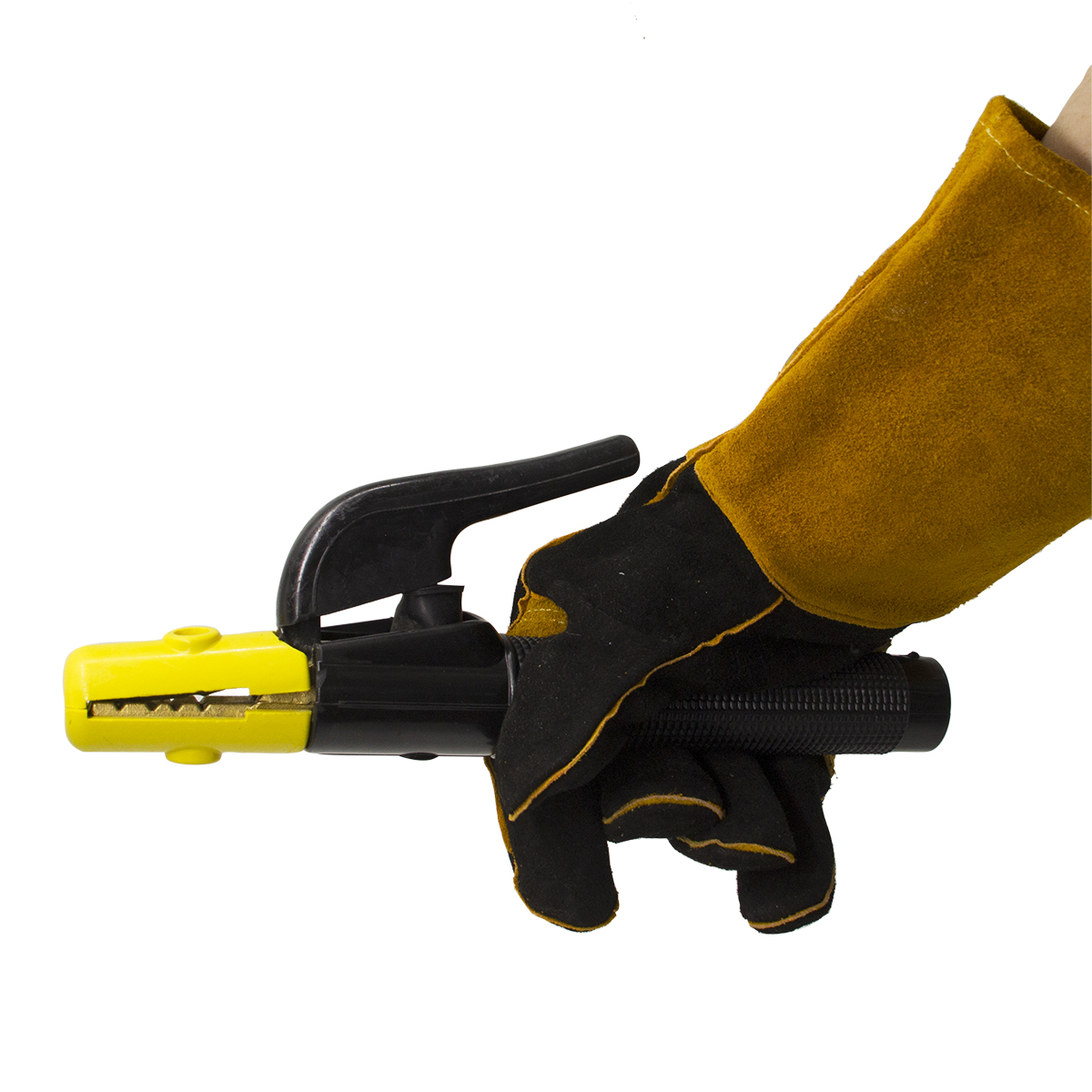 Электрододержатель Holland type 600А используется для ручной дуговой сварки током до 600 А штучными электродами диаметром 1,6-5,0 мм. Электрододержатель типа «зажим» жестко фиксирует электрод в различных положениях, прост и удобен в применении. Латунные губки значительно продлевают срок эксплуатации электрододержателя, в отличии от комбинированных моделей или от моделей с полностью стальными губками. Усиленное латунное основание позволяет работать на больших токах с повышенным коэффициентом полезной нагрузки.
