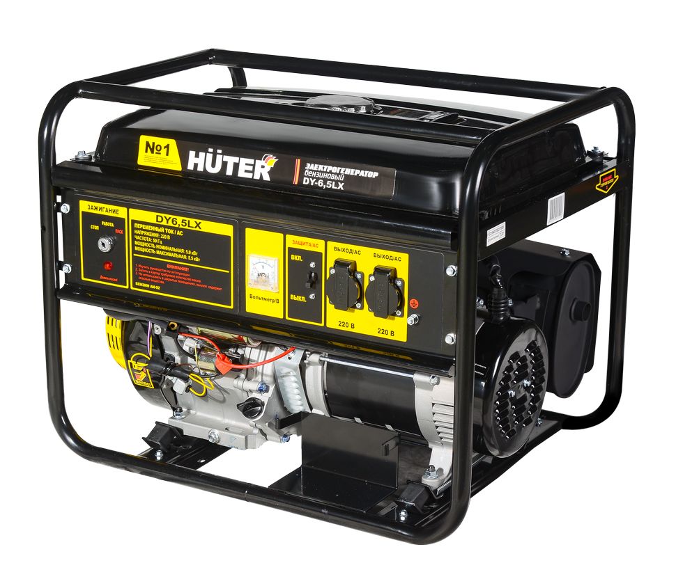 Бензиновый генератор Huter DY6,5LX – портативная компактная электростанция, обеспечивающая электроснабжение бытовой техники и профессионального оборудования, питающегося от стандартной сети 220 Вольт. Это самый выгодный бензиновый электрогенератор, с оптимальными техническими характеристиками и низким расходом топлива.Модель DY6,5LX может использоваться в качестве резервного источника питания для частных домов и квартир, а также как постоянная станция, обеспечивающая работу электроприборов в полевых условиях. Генерирующая установка имеет синхронный тип устройства и щёточный механизм.Комплектация:Бензиновый электрогенератор.Силовая вилка 32 АСвечной ключ. Вороток либо отвёртка (в зависимости от модели)Провода и детали лотка аккумуляторной батареи (для моделей с X в названии)Комплект резиновых опор с гайкамиКлюч электростартера (для моделей с обозначением X)Паспорт (руководство по эксплуатации)Бензиновая электростанция Huter DY6,5LX оборудована мощным одноцилиндровым четырёхтактным двигателем внутреннего сгорания, мощностью 13 л.с. Запуск производится ручным стартером или электростартером от АКБ (*аккумулятор не входит в комплектацию и приобретается отдельно). Для удобства транспортировки, отдельно можно приобрести колёса и ручки. Электрогенератор DY6,5LX имеет рабочую мощность 5 кВт, а также все виды защиты – от перегрузки, короткого замыкания и низкого масляного уровня.