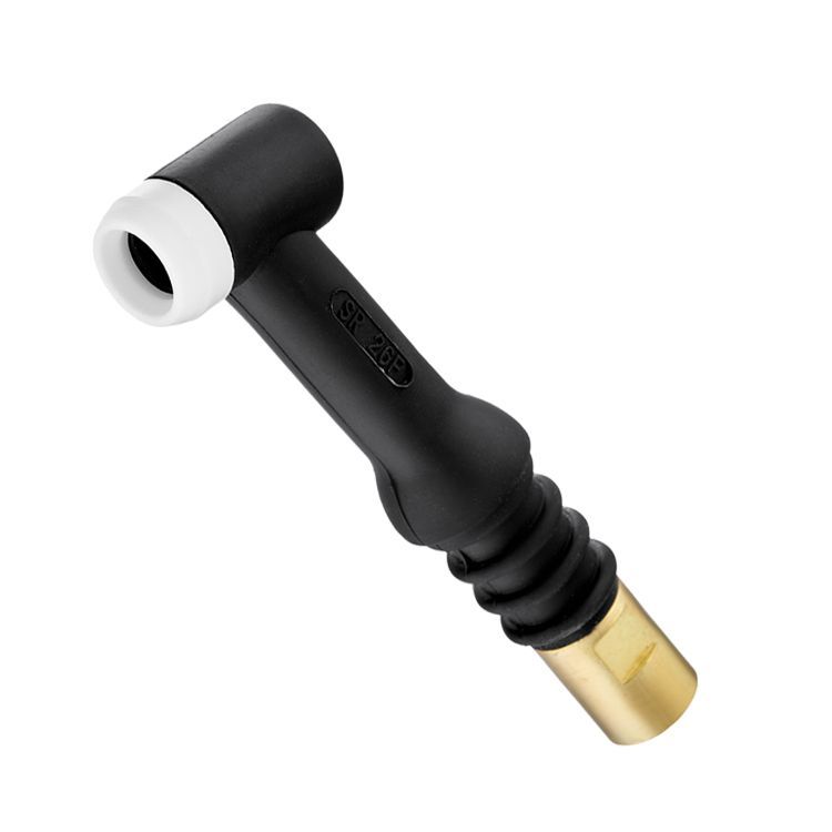 Головка горелки TW 26FX является сменной поворотной (гибкой) частью кнопочной горелки с воздушным охлаждением TW 26 и ее аналогов. На нее крепится держатель цанги, заглушка и шлейф горелки. Предназначена для подачи защитного газа к соплу горелки, подвода сварочного тока к неплавящемуся электроду.