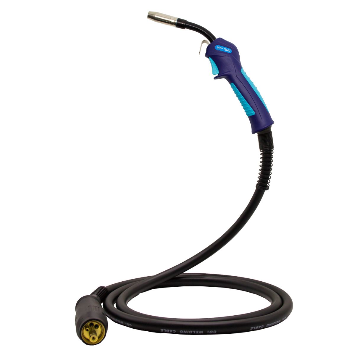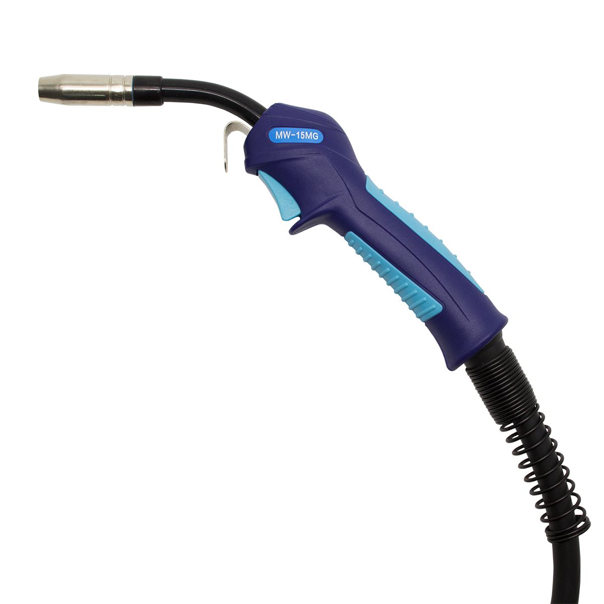 Сварочная горелка Оберон MW-15 MG с воздушным охлаждением предназначена для полуавтоматической сварки в среде защитных газов (MIG/MAG). Используется с аппаратами полуавтоматической сварки, где подключение горелки осуществляется через центральный евроразъем. Горелки обладают высокой прочностью и надежностью, удобны в эксплуатации. Шарнирное соединение делает работу с горелкой более комфортной за счет удобного вращения горелки. Металлическая пружина исключает перегибание кабеля и обеспечивает более плавную подачу проволоки в любом положении горелки. Проверенные временем расходные материалы обеспечивают долгий срок службы, а также взаимозаменяемы с аналогами других брендов. Резиновые вставки в рукоятке обеспечивают надежную фиксацию в руке. На рукоятке размещен специальный крюк для подвешивания горелки во время пауз в работе.