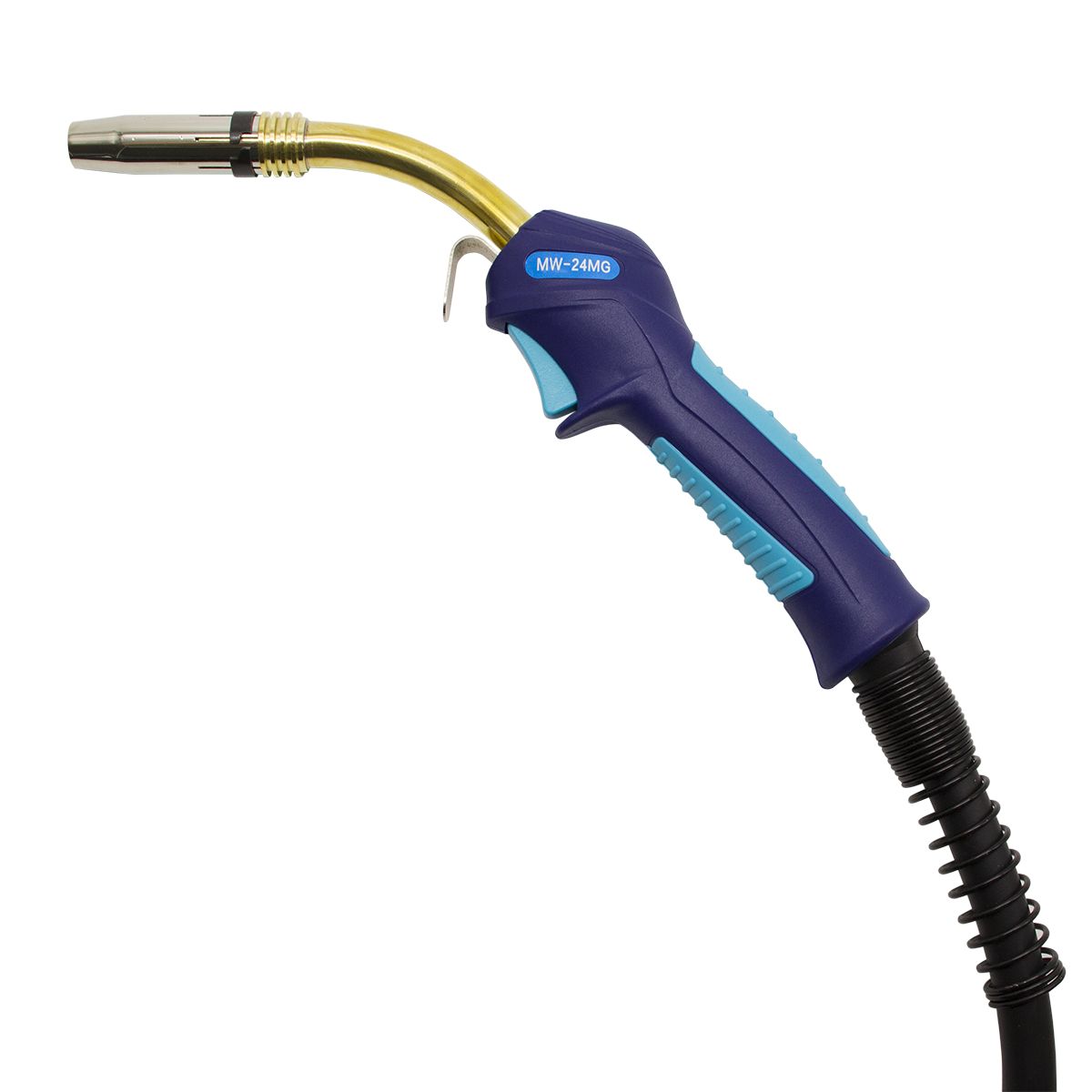Сварочная горелка Оберон MW-24 MG с воздушным охлаждением предназначена для полуавтоматической сварки в среде защитных газов (MIG/MAG). Используется с аппаратами полуавтоматической сварки, где подключение горелки осуществляется через центральный евроразъем. Горелки обладают высокой прочностью и надежностью, удобны в эксплуатации. Шарнирное соединение делает работу с горелкой более комфортной за счет удобного вращения горелки. Металлическая пружина исключает перегибание кабеля и обеспечивает более плавную подачу проволоки в любом положении горелки. Проверенные временем расходные материалы обеспечивают долгий срок службы, а также взаимозаменяемы с аналогами других брендов. Резиновые вставки в рукоятке обеспечивают надежную фиксацию в руке. На рукоятке размещен специальный крюк для подвешивания горелки во время пауз в работе.