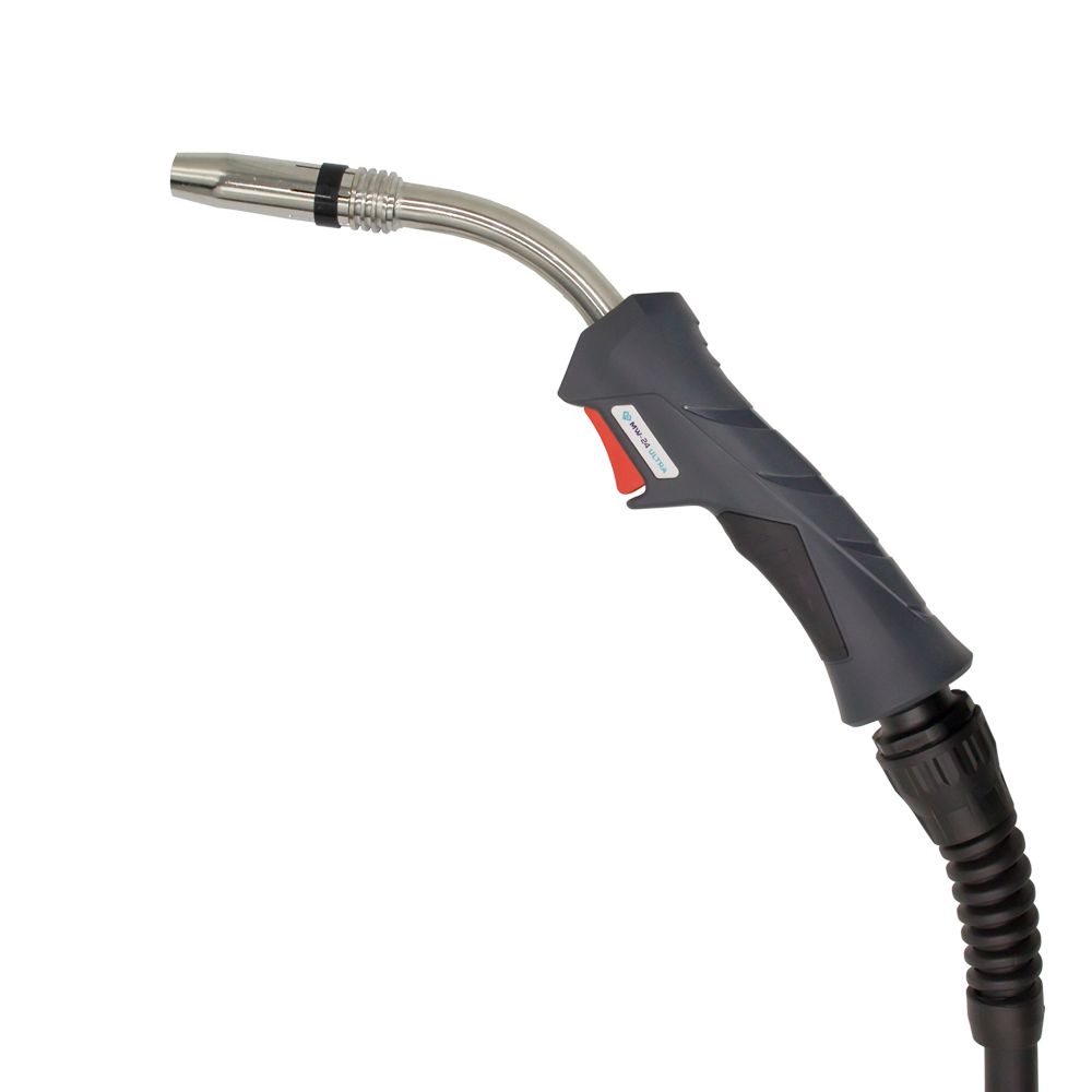 Сварочная горелка Оберон MW-24 Ultra с воздушным охлаждением предназначена для полуавтоматической сварки в среде защитных газов (MIG/MAG). Горелка обладает повышенной прочностью и надежностью, удобна в эксплуатации. Усиленный силовой кабель горелки изготовлен из высокотехнологичных материалов, что повышает его износостойкость. Увеличенное сечение силового кабеля создает хорошую проводимость тока, что дает возможность работать на высоких нагрузках. Шарнирное соединение рукоятки и шлейфа горелки делает эксплуатацию более комфортной за счет удобного вращения горелки. Также улучшается контакт между рукояткой и пружиной. Усиленная пружина защищает кабель от перегибов, за счет чего обеспечивается более плавная подача проволоки у евроразъема. Латунная гайка евроразъема обеспечивает надежную фиксацию горелки с евроадаптером. Подходит для большинства моделей сварочных полуавтоматов известных производителей. Эргономичная рукоятка анатомической формы обеспечивает комфортный захват и эксплуатацию горелки в крагах и перчатках.