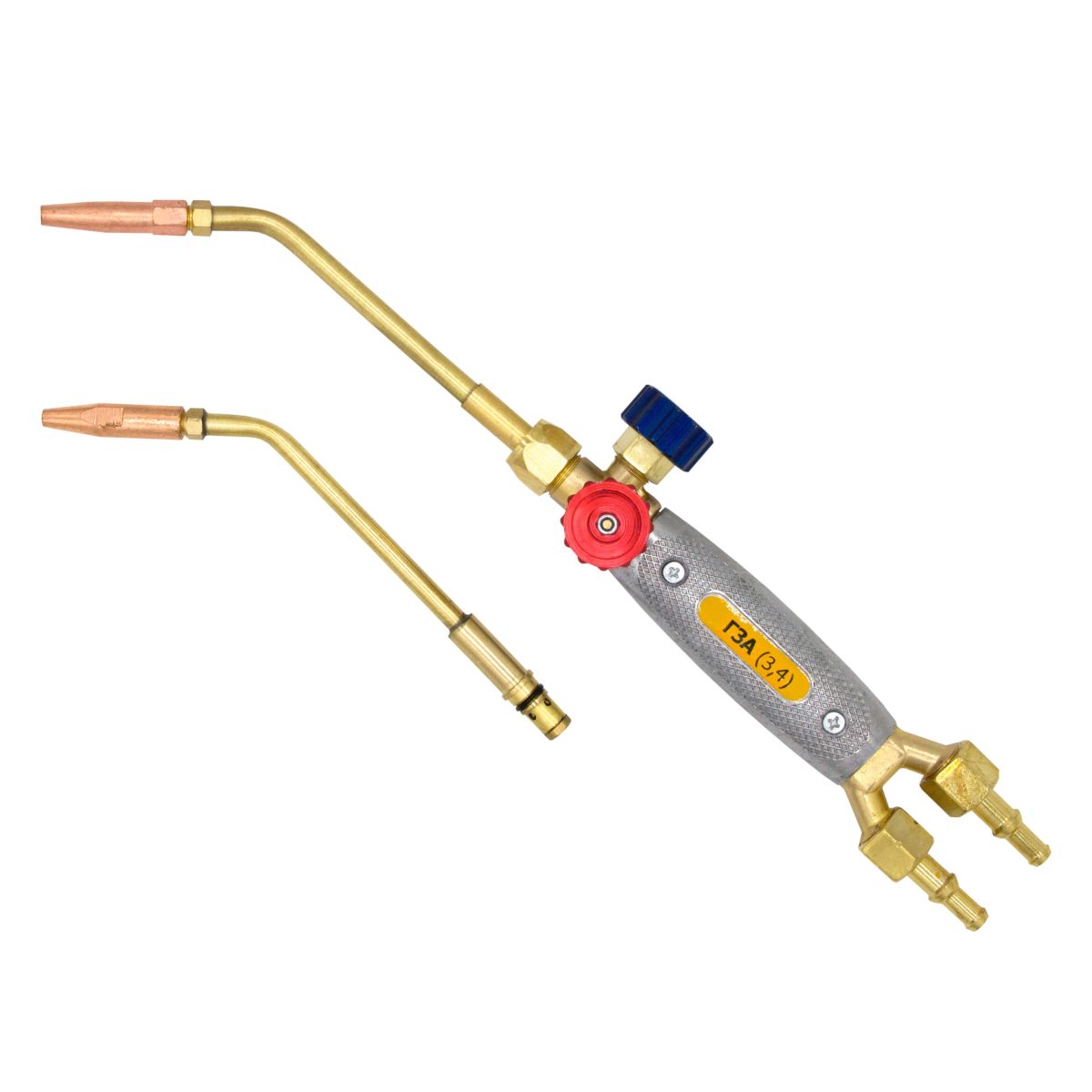 Горелка ацетиленовая Г3А (3,4) (Оберон) газопламенная предназначена для ручных процессов ацетилено-кислородной сварки, пайки, нагрева и других видов газопламенной обработки металлов. Основные параметры горелки соответствуют требованиям ГОСТ 12.2.008 и ГОСТ 1077. Горелка имеет 2 наконечника: наконечник №3 обеспечивает сварку стали 2-4 мм, наконечник №4 - сварку стали 4-7 мм. Регулирование мощности пламени в пределах одного наконечника производится вентилями. Ступенчатое изменение мощности пламени производится сменой наконечников.