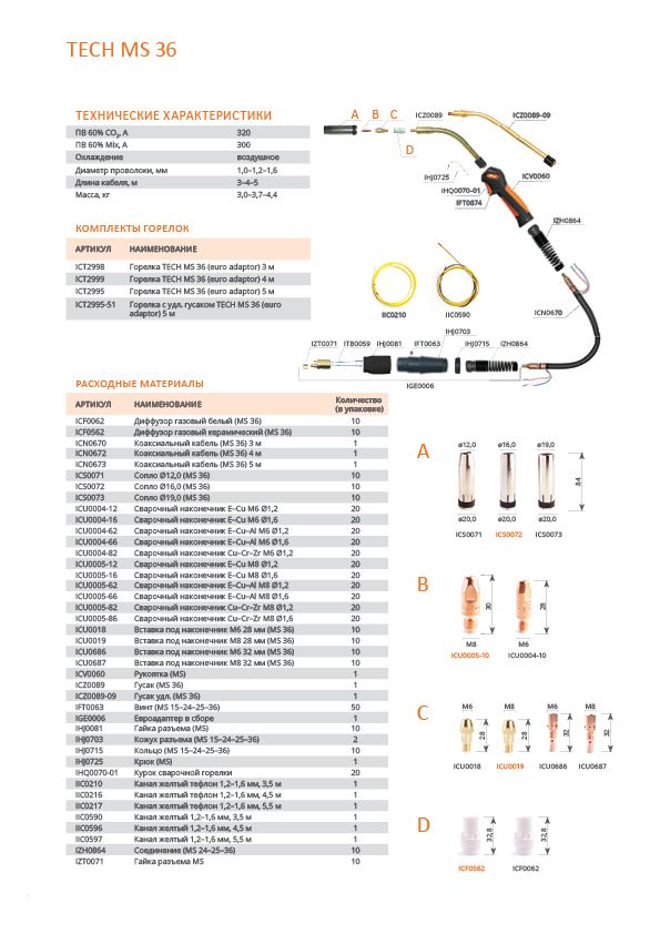 Сварочная горелка Сварог TECH MS 36 предназначена для полуавтоматической сварки в среде защитных газов (MIG/MAG).