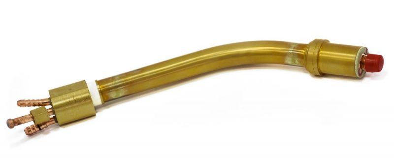 Гусак – заменяемая часть горелки для полуавтоматической сварки. Замена гусака может потребоваться в случае выхода из строя данного элемента либо необходимости выполнения специфичных сварочных задач. На гусак устанавливаются сопло и наконечник. В рукоятке горелки гусак подключается к силовому кабелю и шлангу подачи газа. Если горелка оснащена жидкостным охлаждением, на гусаке появляются фитинги для подключения воды.