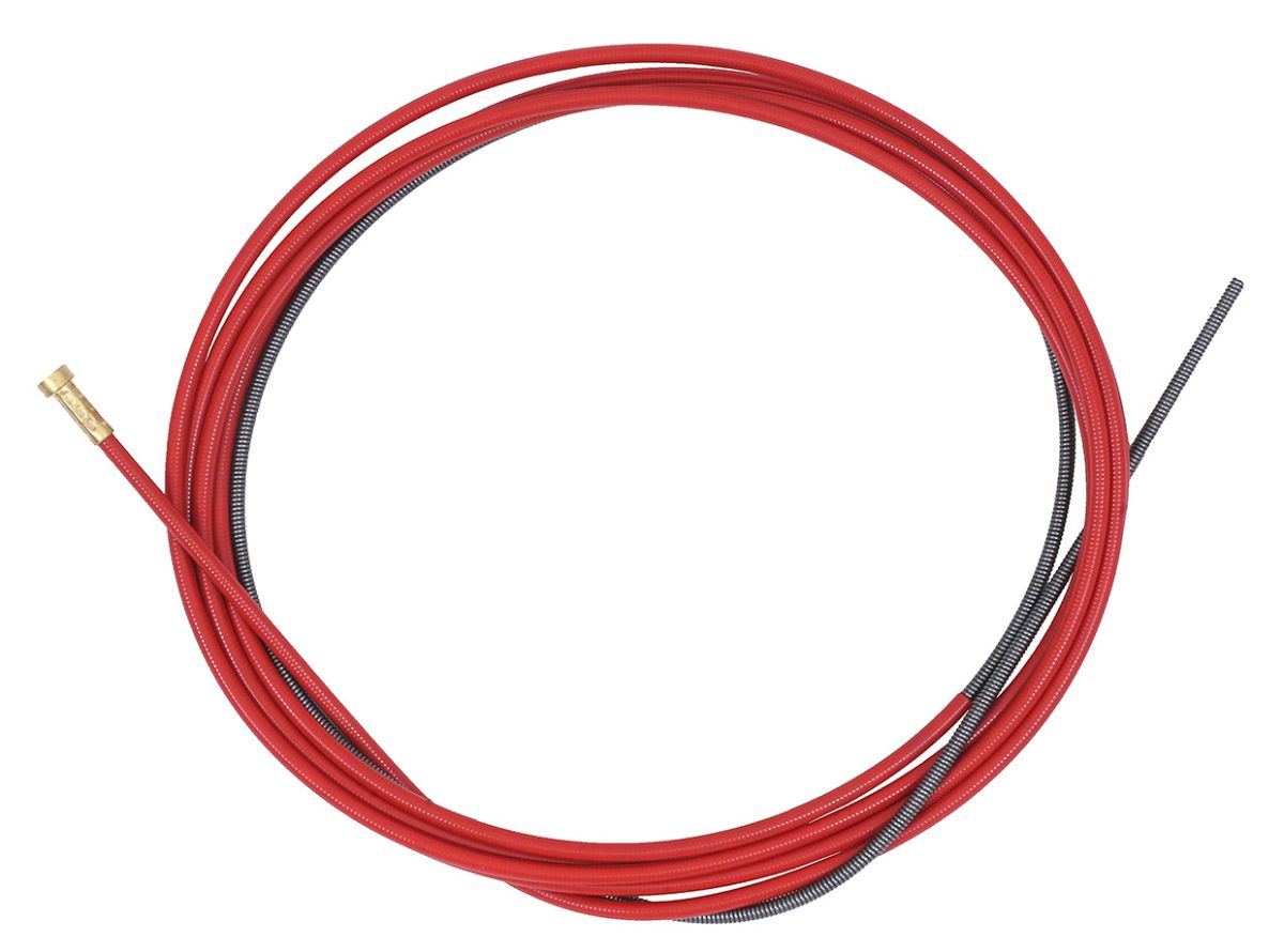 Канал направляющий (1,0–1,2) 5,5 м красный необходим в сварке типов MIGMAG для подачи сварочной проволоки к соплу сварного пистолета. Подача происходит непосредственно от инвертора или от выносного элемента, подающего проволоку. Фиксация концов канала осуществляется в горелке и в инверторе.