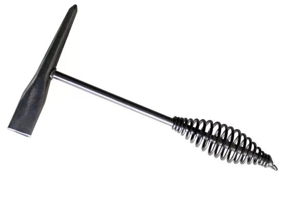 Пружинная конструкция ручки смягчает отдачу в руку во время удара.