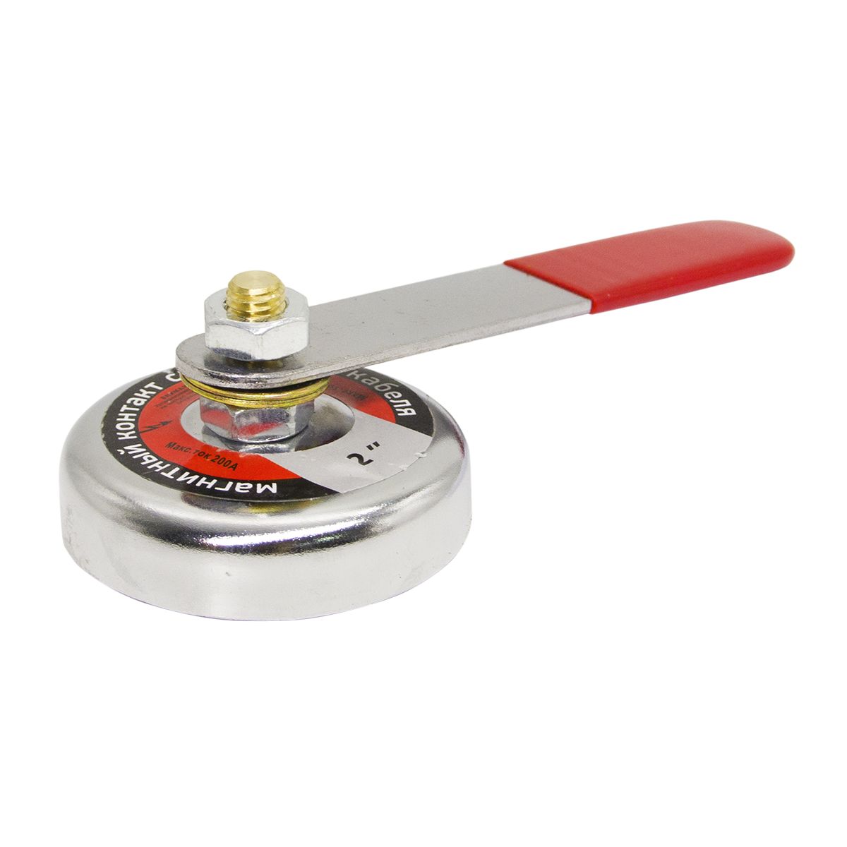 Клемма заземления магнитная МКЗ-200 предназначена для подсоединения сварочного кабеля к заземлению. Благодаря магнитному основанию клемма хорошо крепится к металлической поверхности любой формы, обеспечивает надежный контакт в месте подключения и не перегревается благодаря меньшей области соприкосновения. В конструкции магнитной клеммы заземления входит ручка - с ее помощью легко снимать клемму с детали.