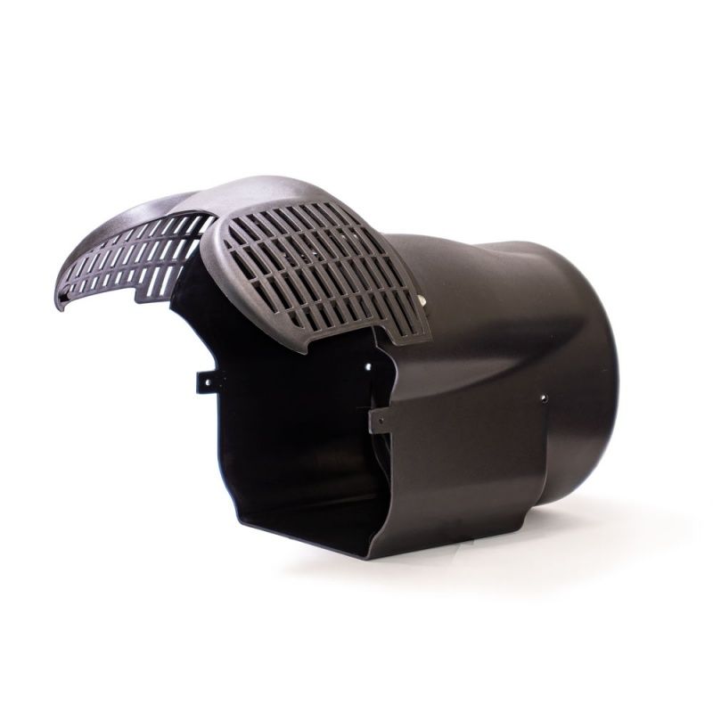 Пластиковый кожух предназначен не только для защиты оператора от прикосновения к горячим поверхностям работающего аппарата, но и для оптимального направления воздушных потоков от вентилятора к поршням.