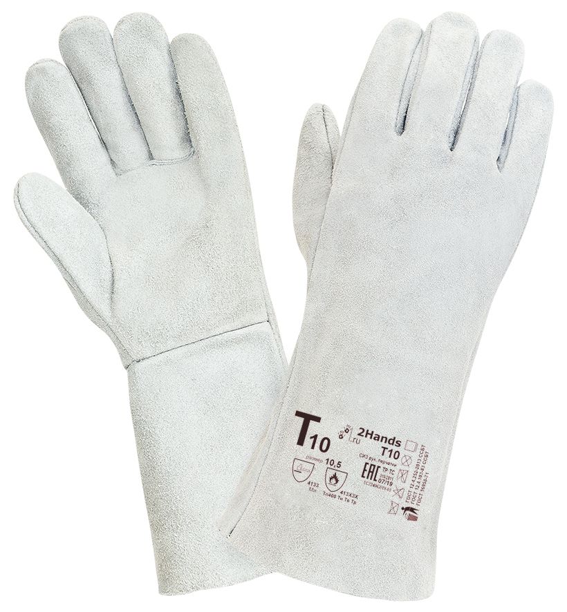 Перчатки сварщика (краги) 2Hands T10 спилковые для защиты от механических воздействий и повышенных температур. Перчатки пятипалые без подкладки. Спилок КРС сорта АВ (1,5 +/-0,2 мм), высокая толщина кожаного материала и обработка, обеспечивающая сохранение мягкости спилка в течение длительного времени хранения . Перчатки изготавливаются из высококачественного спилка спинной части шкур и прошедшего предварительный отбор. Перчатки обеспечивают высокую механическую защиту, защиту от повышенных температур - открытого пламени, искр и брызг расплавленного металла.