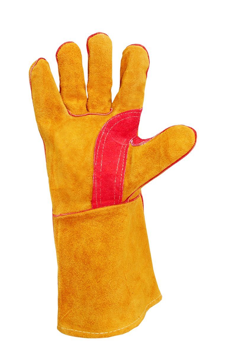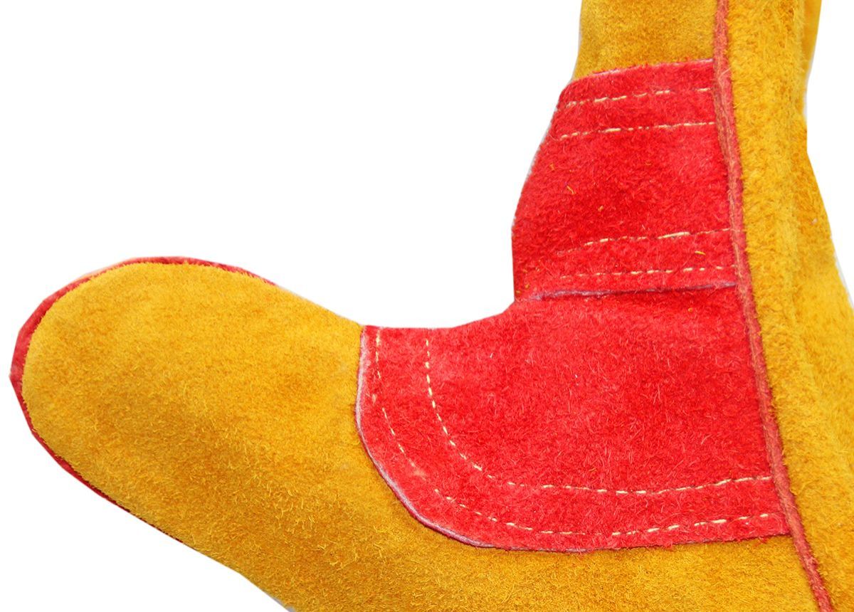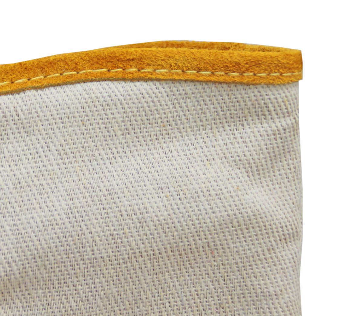 Краги спилковые желтые изготовлены из отборного буйволиного спилка толщиной 1,0–1,2 мм и обеспечивают надежную защиту даже в тяжелых рабочих условиях. Дополнительное усиление ладони и большого пальца. Полностью прошиты кевларовой нитью. Удлинённая манжета обеспечивает дополнительную защиту запястий и предплечий рук. Широкий раструб краги способствует удобному надеванию краги и позволяет, в случае необходимости, быстро снять крагу с руки. Подклад из джерси на ладони и из хлопка на запястьях. Предназначены для сварочных работ, работ с грубыми абразивными поверхностями, в холодную погоду, а также с сильно нагретыми предметами.