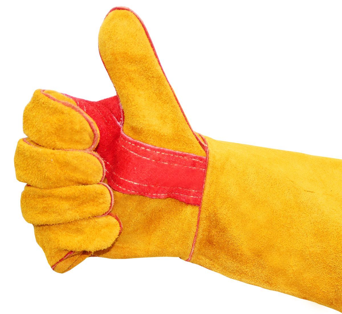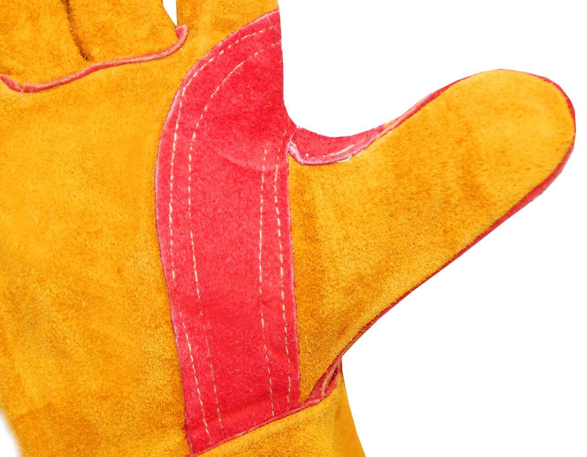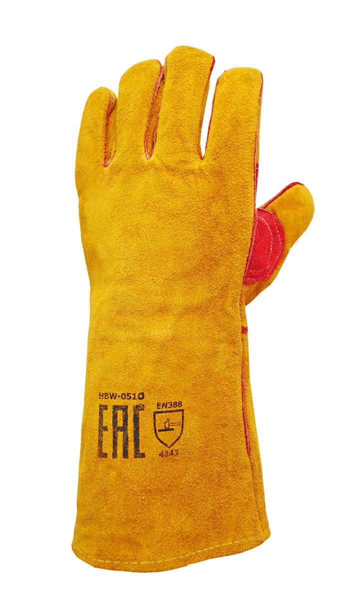 Краги спилковые желтые изготовлены из отборного буйволиного спилка толщиной 1,0–1,2 мм и обеспечивают надежную защиту даже в тяжелых рабочих условиях. Дополнительное усиление ладони и большого пальца. Полностью прошиты кевларовой нитью. Удлинённая манжета обеспечивает дополнительную защиту запястий и предплечий рук. Широкий раструб краги способствует удобному надеванию краги и позволяет, в случае необходимости, быстро снять крагу с руки. Подклад из джерси на ладони и из хлопка на запястьях. Предназначены для сварочных работ, работ с грубыми абразивными поверхностями, в холодную погоду, а также с сильно нагретыми предметами.