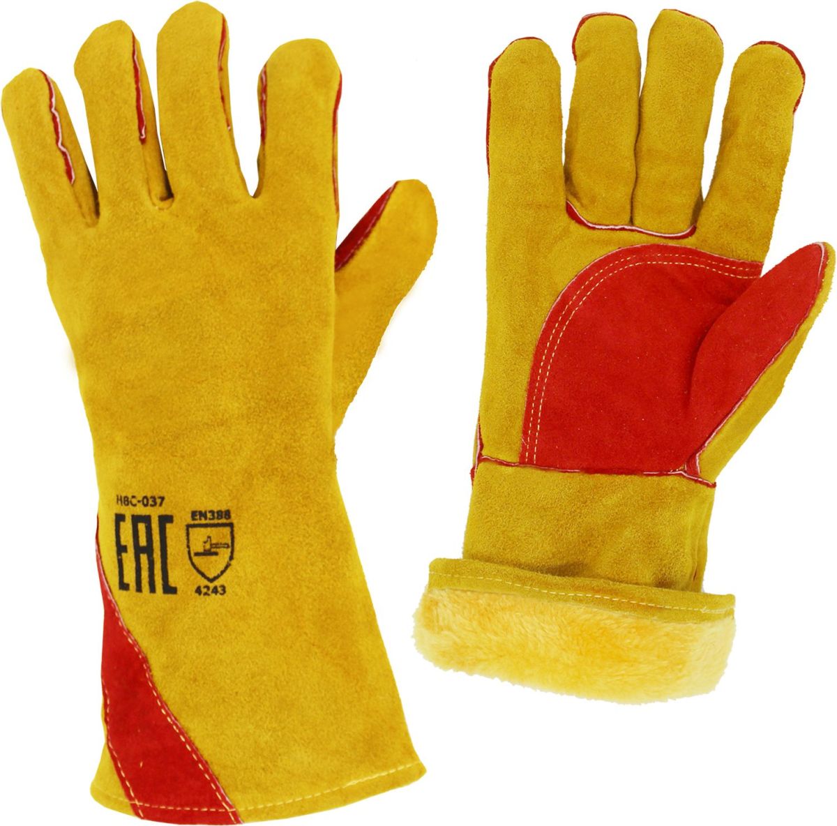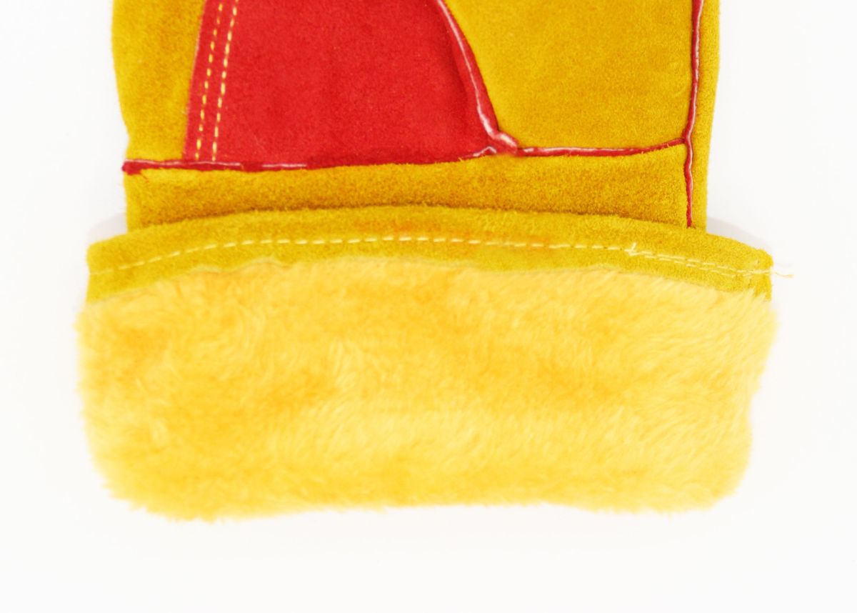 Краги спилковые желтые утепленные изготовлены из отборного буйволиного спилка толщиной 1,0–1,2 мм и обеспечивают надежную защиту даже в тяжелых рабочих условиях. Дополнительное усиление ладони и большого пальца. Полностью прошиты кевларовой нитью. Удлинённая манжета обеспечивает дополнительную защиту запястий и предплечий рук. Широкий раструб краги способствует удобному надеванию краги и позволяет, в случае необходимости, быстро снять крагу с руки. Подкладка из искусственного меха. Предназначены для сварочных работ, работ с грубыми абразивными поверхностями, в холодную погоду, а также с сильно нагретыми предметами.