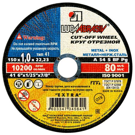 Круг отрезной по металлу Луга 73664, 150 х 1,0 х 22,2 мм, используется совместно с УШМ только для сухого реза. Он пригодится при проведении строительных и ремонтных работ в частной мастерской или бытовых условиях.