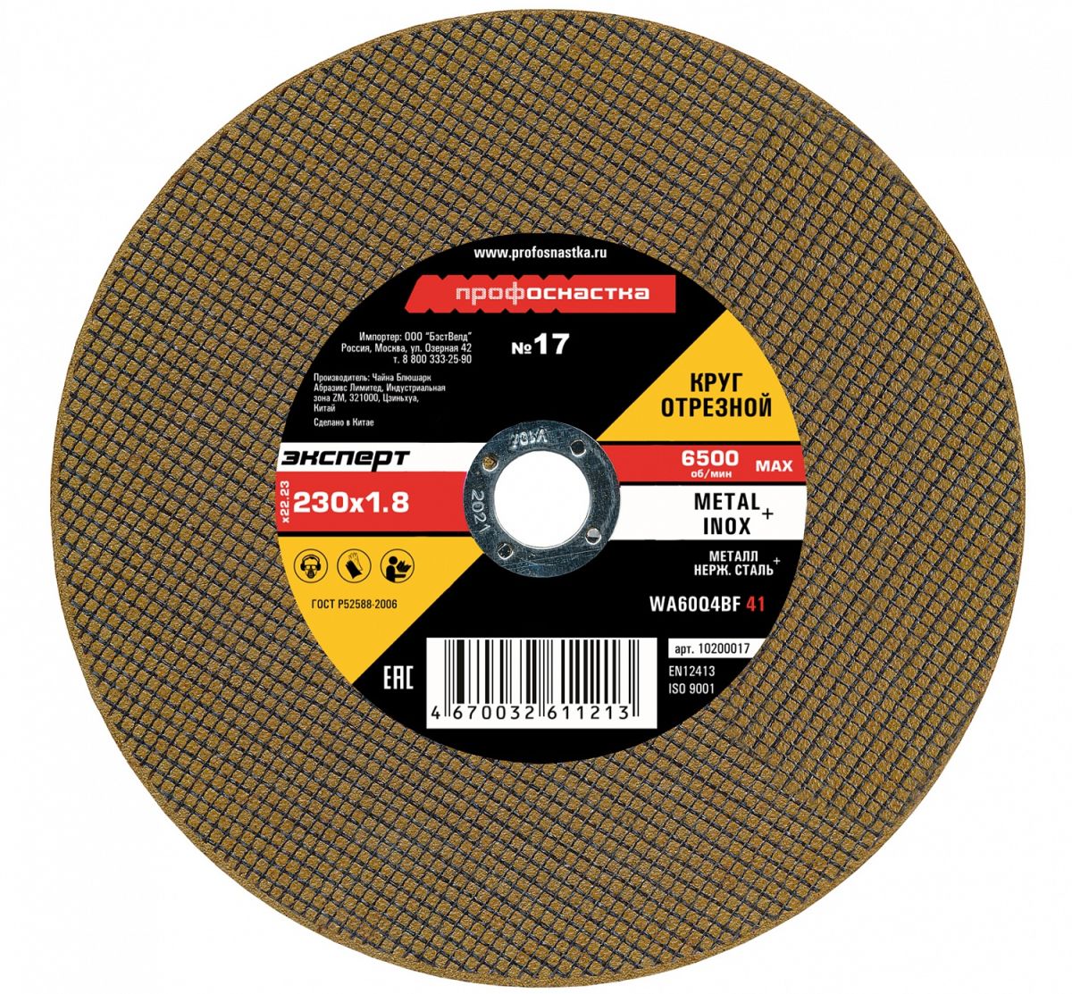 Круг отрезной Профоснастка ЭКСПЕРТ 41 230x1,8x22,23мм мет/нерж №17