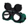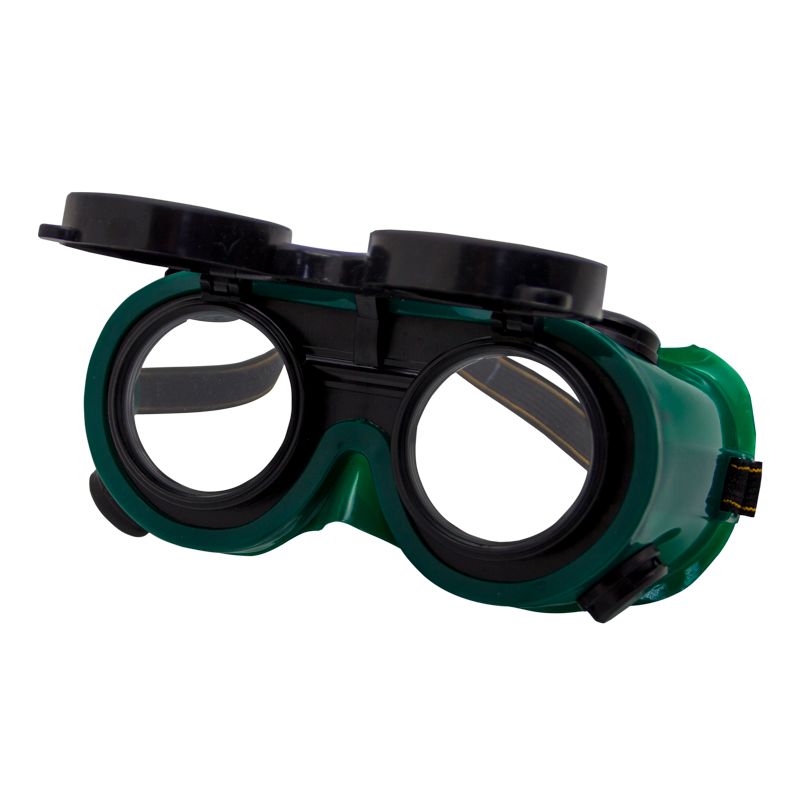 Очки газосварщика с откидными стеклами предназначены для защиты глаз от слепящей яркости света, ультрафиолетового, инфракрасного излучений и от воздействия твердых частиц. Очки имеют откидные стекла, изготовленные из поликарбоната, которые защищают глаза при работе сварочным оборудованием и удобно одеваются поверх корректирующих очков. Эластичная регулируемая резинка плотно фиксирует очки на голове.