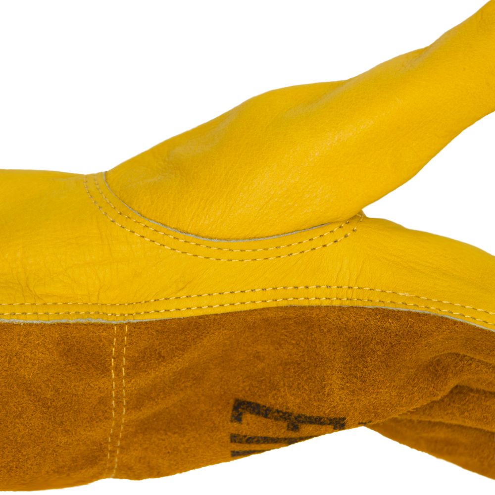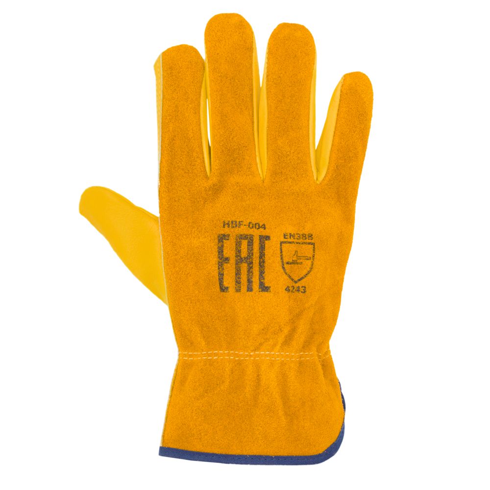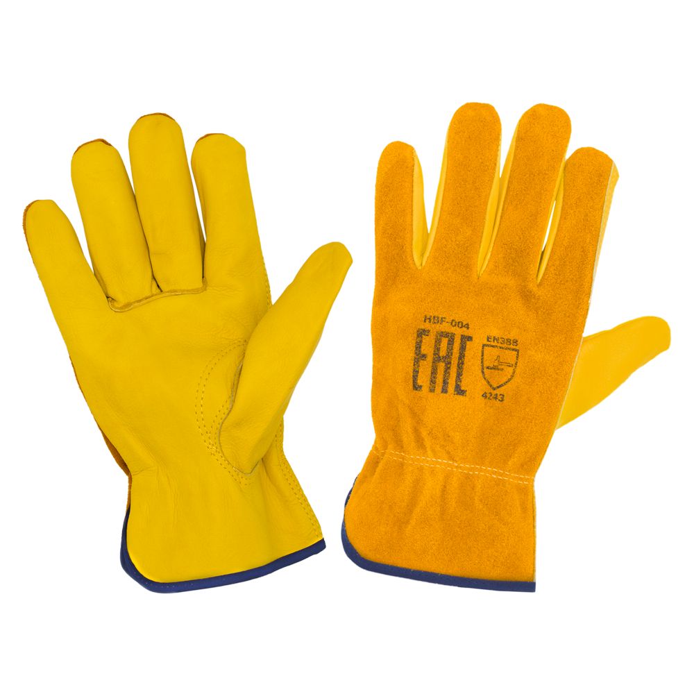 Перчатки рабочие кожаные комбинированные Драйвер-11 (кожа и спилок класса AB 1.0-1.2мм) изготовлены из мягкой кожи и спилка. Предназначены для защиты от механических повреждений и высоких температур. Рабочая часть Драйвер-11 из высококачественной коровьей кожи для защиты от проколов, разрывов и других механических повреждений. Тыльная сторона из спилка для дополнительной защиты от высоких температур. Основание имеет резиновую манжету для надежной фиксации перчатки на руке. Высокая прочность кожаной рабочей перчатки достигнута усиленным двойным швом. Швы закрыты вставками из спилка, которые предотвращают прогорание ниток. Перчатки кожаные комбинированные Драйвер-11 имеют повышенную стойкость к механическим воздействиям.