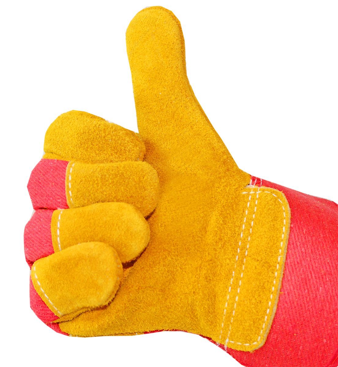Перчатки спилковые желтые изготовлены из высококачественного спилка (спилок AB 1,0-1,2 мм) и плотной хлопчатобумажной ткани (саржа). Спилковая кожа на ладонной части перчаток комбинируется с хлопчатобумажной тканью на тыльной стороне. Жесткий прорезиненный манжет защищает руки в области запястья и надежно фиксирует перчатку на руке. Рабочая часть перчатки цельная. Флисовая подкладка на ладонной части обеспечивает дополнительную защиту. Перчатки имеют высокую прочность, стойкости к истиранию, разрыву и относительную стойкость к проколам и порезам. Защищают от пониженных температур. Перчатки применяются для защиты рук от повреждений при механических нагрузках, для обеспечения надежного захвата. Перчатки подходят для выполнения работ с грубыми поверхностями, например, такими как необработанная древесина, при работах по металлообработке. Обеспечивают высокий комфорт при складских, погрузочно-разгрузочных, строительных и ремонтных работах.