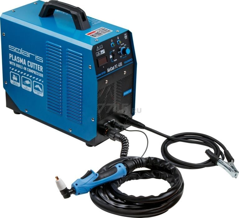 Плазморез SOLARIS AirCut PC-400 имеет встроенный воздушный компрессор, поэтому не требует подключения к внешнему компрессору.