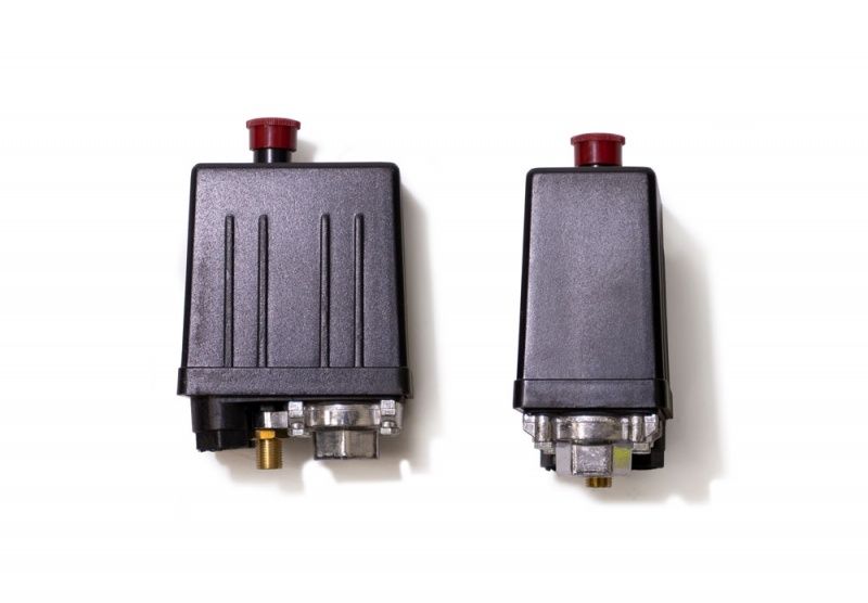 Реле давления или прессостат - универсальный электромеханический узел компрессоров AURORA. Блок, с помощью регулировочного винта, задаёт значения давления при котрых компрессор будет включать и отключать закачку воздуха в ресивер.