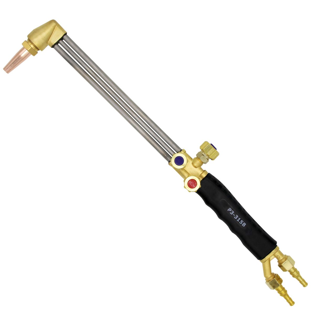 Резак универсальный Р3-315В (Оберон) с внутрисопловым смешением газов предназначен для ручной газокислородной резки литниковых систем и разделки металлолома. Применяются газосмесительные мундштуки под горючие газы: Пропан/Метан и Ацетилен. Основные параметры резаков соответствуют требованиям к резакам типа Р3 по ГОСТ5191.
