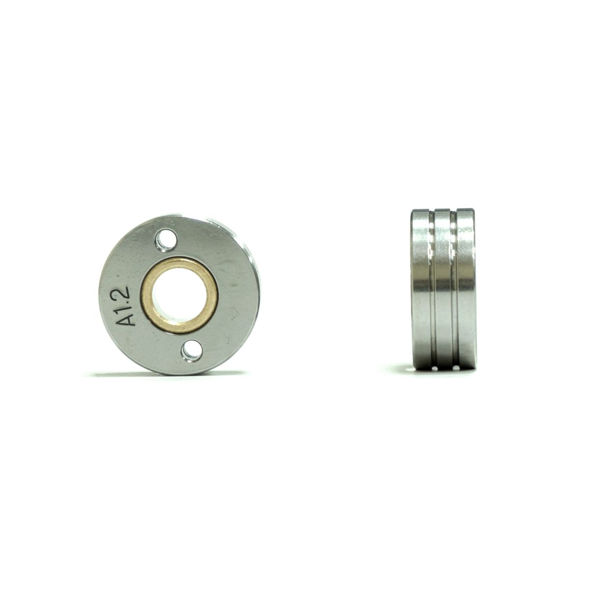 Ролик подачи для аппаратов полуавтоматической сварки является сменной деталью подающего механизма, которая отвечает за стабильную и равномерную доставку электродной проволоки через горелку в зону сварки. Размер канавки ролика подбирается в соответствии с диаметром сварочной проволоки. Наиболее распространены подающие ролики под проволоку: 0.6 / 0.8 / 0.9 / 1.0 / 1.2 / 1.6 мм