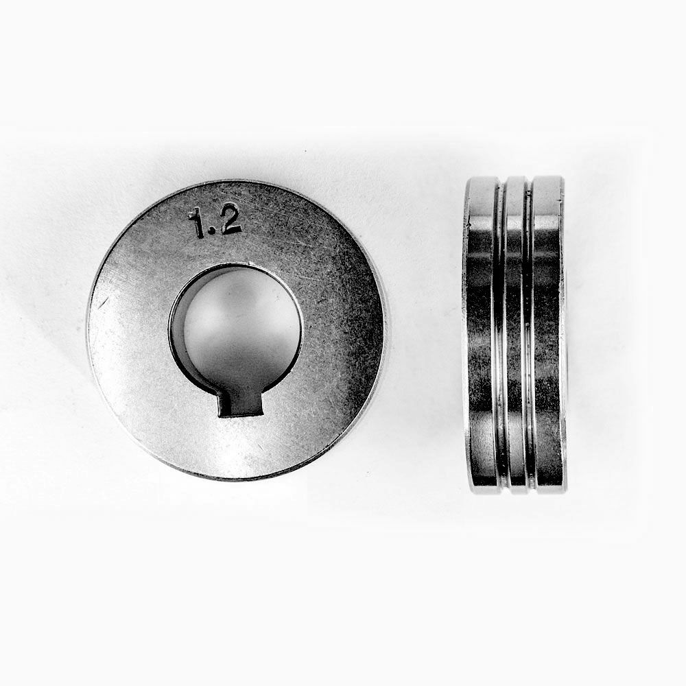 Ролик подачи для аппаратов полуавтоматической сварки является сменной деталью подающего механизма, которая отвечает за стабильную и равномерную доставку электродной проволоки через горелку в зону сварки. Размер канавки ролика подбирается в соответствии с диаметром сварочной проволоки. Наиболее распространены подающие ролики под проволоку: 0.6 / 0.8 / 0.9 / 1.0 / 1.2 / 1.6 мм