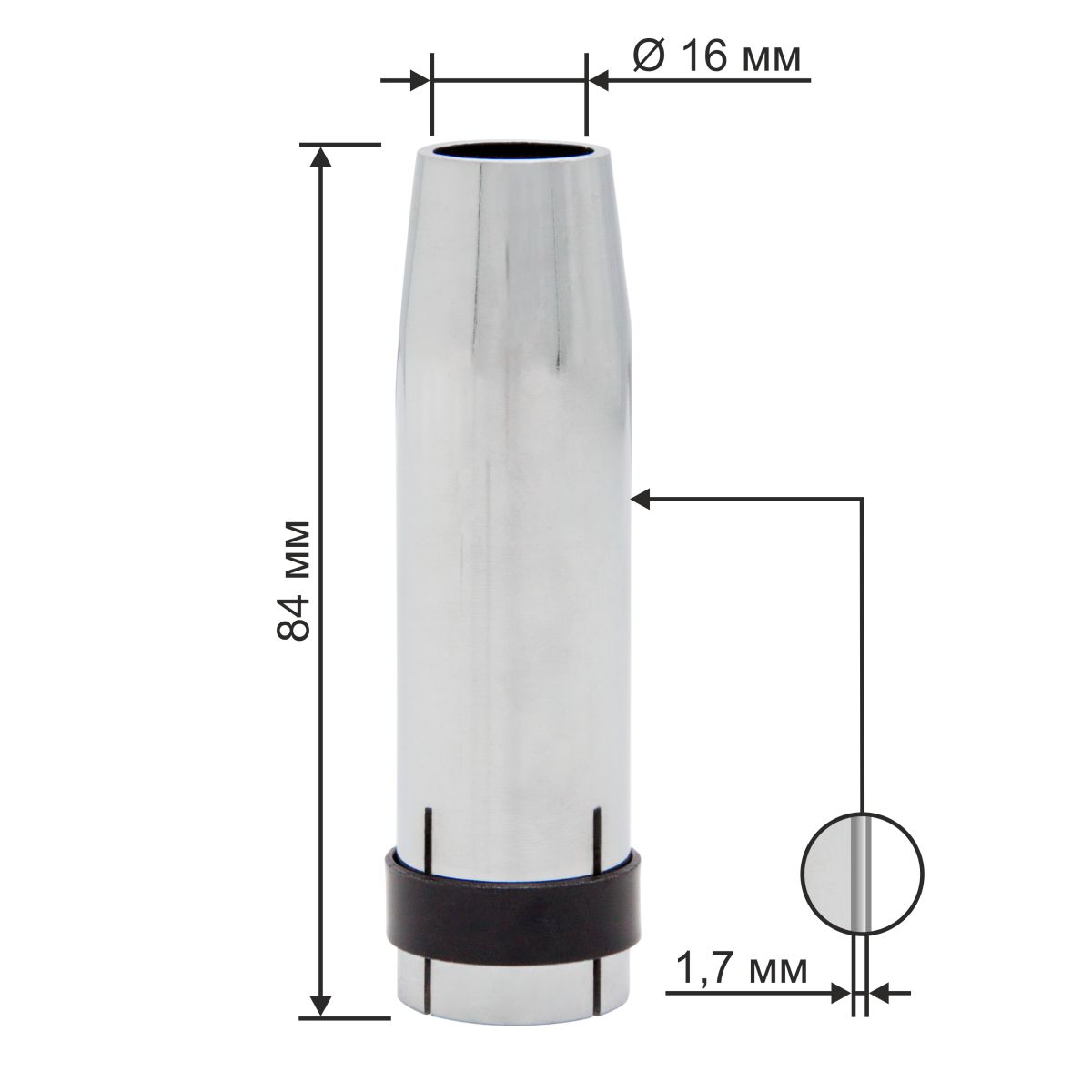 Газораспределительное сопло предназначено для подачи защитного газа к точке сварки. Диаметр конуса 16 мм.