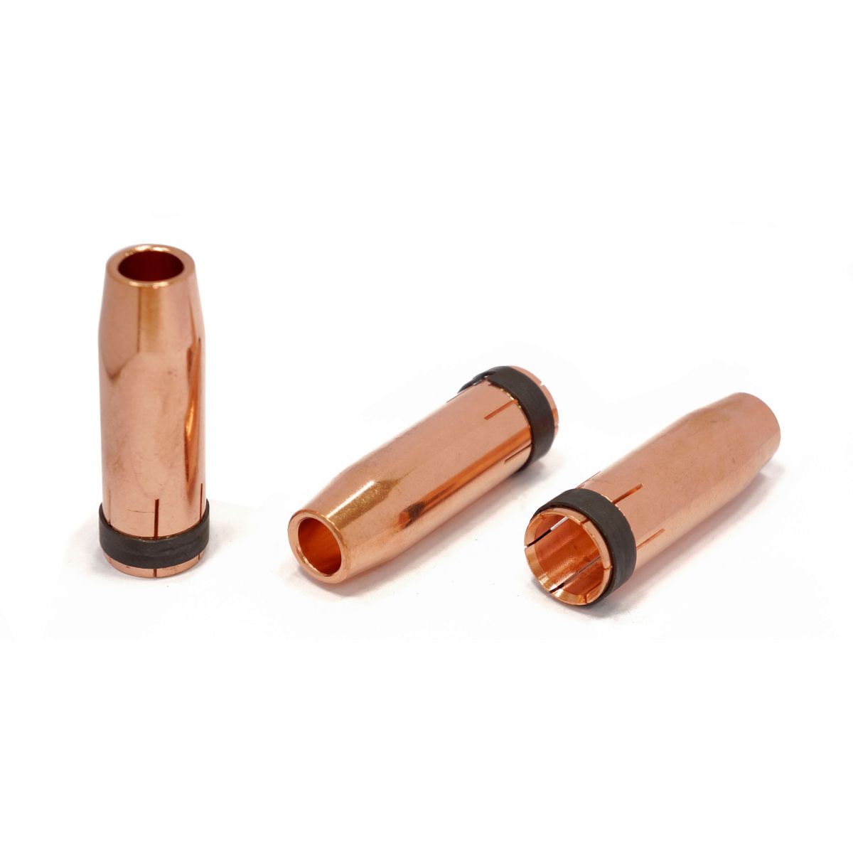 Сопло MIG-MAG - это расходная часть горелки, которая отвечает за формирование струи защитного газа в процессе полуавтоматической сварки. В процессе работы сварочные брызги налипают на сопло, а продолжительные работы на максимальных токах выжигают сопло изнутри. Поэтому деталь приходится периодически менять. Для того, чтобы продлить жизнь расходнику – сопло необходимо время от времени зачищать.