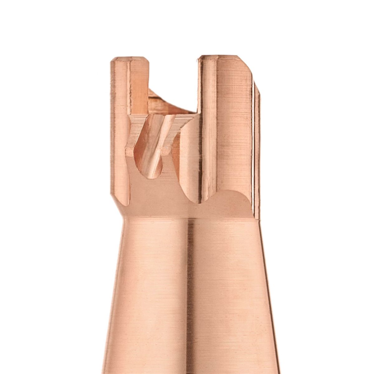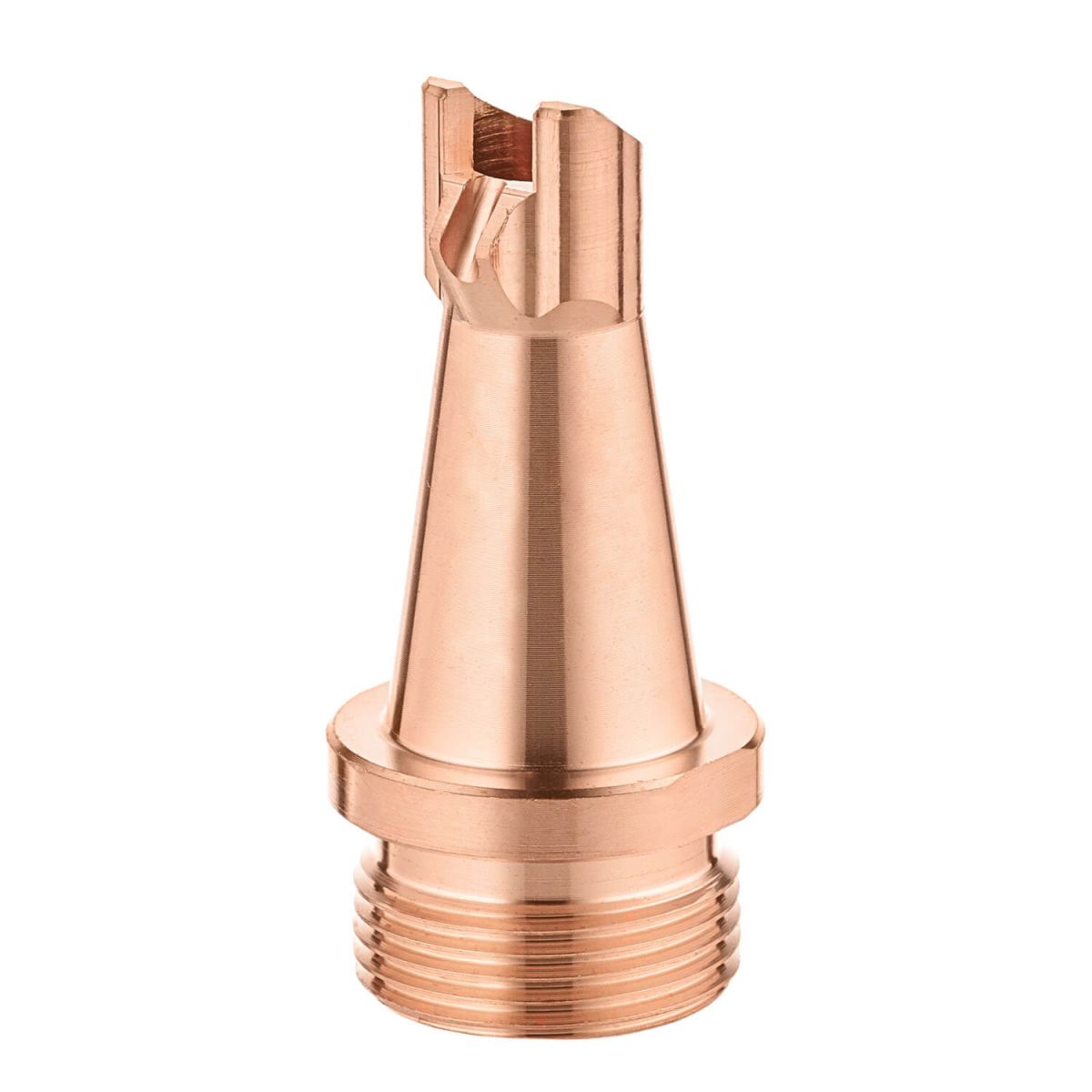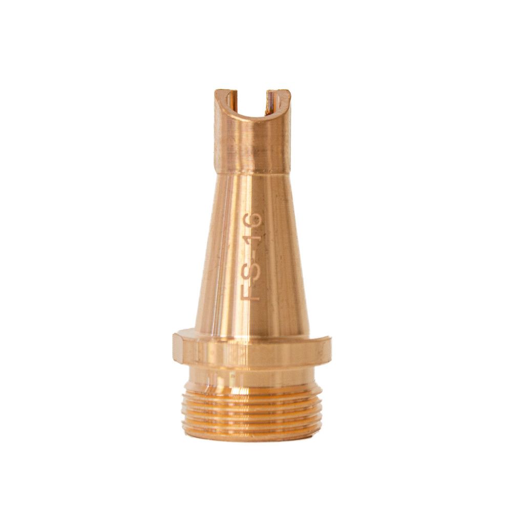 Сопло FS-16 используется для лазерной сварки стыковых швов. Сопло используется при сварке металла средних и больших толщин, где необходимо заполнение сварочного шва присадочным материалом. При сварке соплом FS-16 используется проволока диаметром 1,6 мм. Сопло выполнено из меди, поэтому оно обладает отличными тепловодными свойствами и может выдержать высокие температуры при длительной эксплуатации. Сопло крепится к лазерной головке при помощи резьбы M16. Высота сопла 39 мм.
