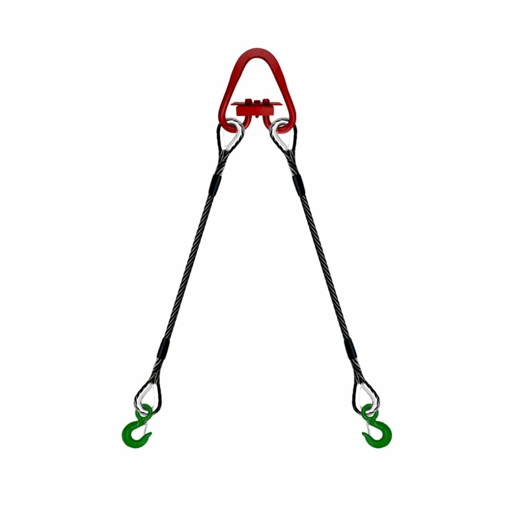 2СК Заплет – два прочных каната, соединенных звеном (овальным неразъемным или треугольным разъемным) для зацепки тяжелых грузов за две точки. На одном конце оборудования закреплен чалочный крюк, на другом – коуш и петля. Переплетенные пряди каната обеспечивают прочное соединение. При этом, чем тяжелее груз, тем выше разрывное усилие стропа за счет еще более сильного контакта проволоки.