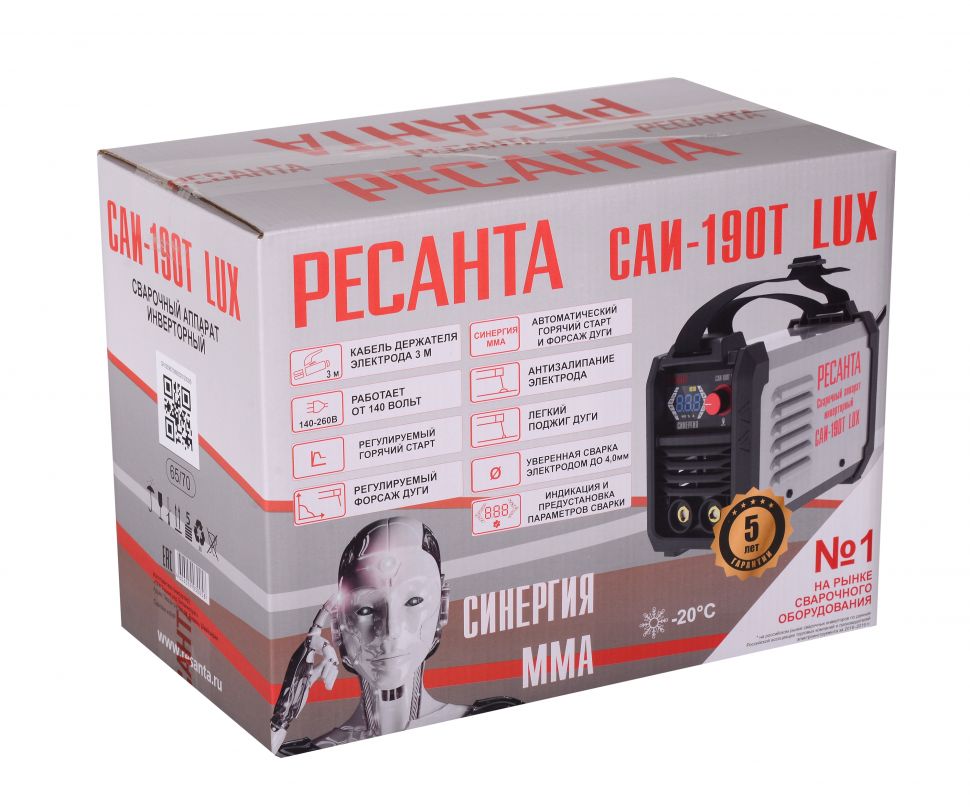 САИ-190T LUX - предназначен для ручной дуговой сварки штучным покрытым электродом на постоянном токе и электродом с рутиловым и основным покрытием (режим ММА). Сварочные аппараты разработаны на базе IGBT транзисторов .