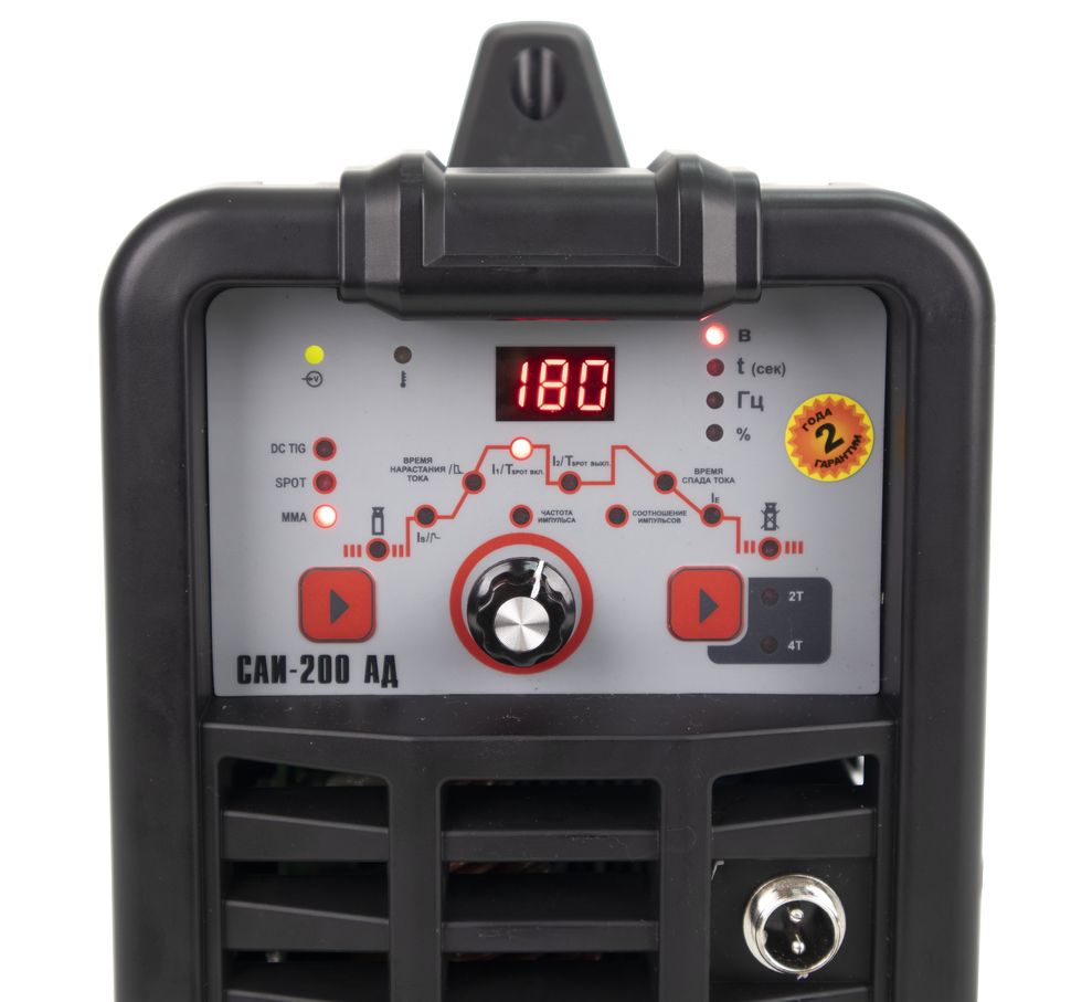 Сварочный аппарат РЕСАНТА САИ АД (далее САИ АД) – современный портативный однофазный инверторный сварочный аппарат с функцией аргонодуговой сварки постоянным током (TIG DC). Данный аппарат изготовлен по передовой IGBT технологии. Аппарат позволяет производить: