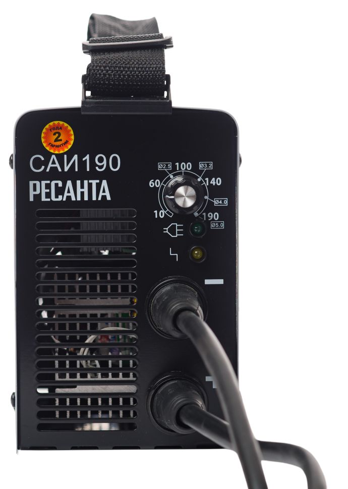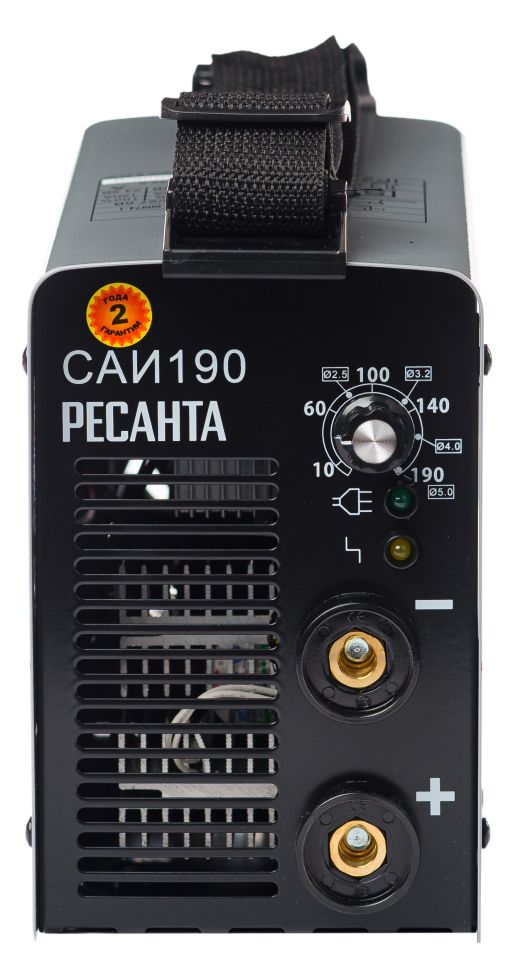 Практичный ремень позволяет легко переносить прибор по рабочей площадке. Прочный металлический корпус инвертора Ресанта САИ 190 защищает от внешних механических воздействий и обеспечивает долгий срок службы.
