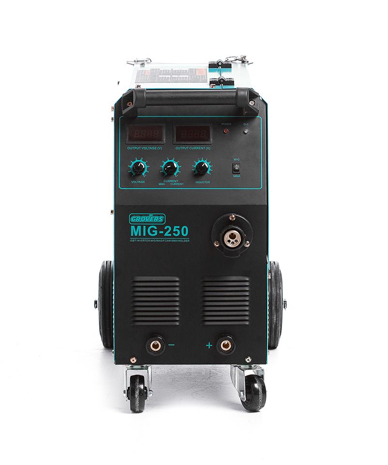 Аппарат произведен на базе современной инверторной технологии c использованием мощных IGBT модулей! Конструкция внутри выполнена таким образом что аппарат не боится технической пыли. GROVERS MIG250 и MIG315 имеет мощный 4-х роликовый подающий механизм. Также аппарат оснащен режимом ММА сварки. Электронная схема управления включает в себя уникальную систему контроля сварочных динамических характеристик; обеспечивает стабильность горения дуги, низкий уровень разбрызгивания металла, прекрасную форму шва, высокую эффективность сварки!