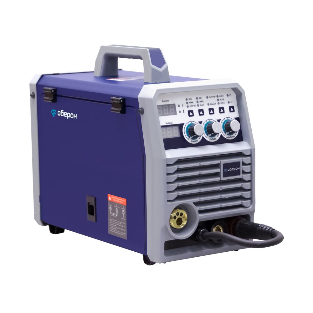 Сварочный аппарат Оберон MIG-205 разработан, изготовлен и протестированы с учетом передовых инверторных технологий и повышенных требований к уровню безопасности. Данный аппарат может выполнять сварку без газовой защиты. Отличительные особенности аппарата: Инверторная технология IGBT, частота до 28 КГц, уменьшенные габариты, меньший вес, более высокая эффективность и энергосбережение. Стабильное выходное напряжение и сильная устойчивость к колебаниям напряжения сети. Синергетическое управление сварочным процессом. Регулировка параметров сварки в соответствии с различными заготовками и технологией сварки. Возможность применять одновременно положительную и отрицательную полярность при использовании сварочной проволоки FLUX. Режимы полуавтоматической сварки в среде защитного газа MIG/MAG, ручной дуговой сварки MMA и аргонодуговой сварки TIG Lift. В качестве защитного газа могут использоваться инертные (Ar), активные газы (CO2) и сварочные смеси (Ar + CO2) для дуговой сварки плавящимся электродом в защитном газе (MIG/MAG). Состав защитного газа может быть следующим: 100% CO2, 80%Ar + 20%CO2, и 98%Ar +2%CO2. Подходит для сварки низкоуглеродистой стали, нержавеющей стали и их сплавов. Подходит для сварки сплошной проволокой и порошковой проволокой. Стандартная комплектация: Сварочный аппарат - 1 шт.; Инструкция по эксплуатации - 1 шт.; Сварочная горелка MW-15, 3 м- 1 шт.; Клемма заземления с кабелем, 3 м - 1 шт; Электрододержатель с кабелем 3м