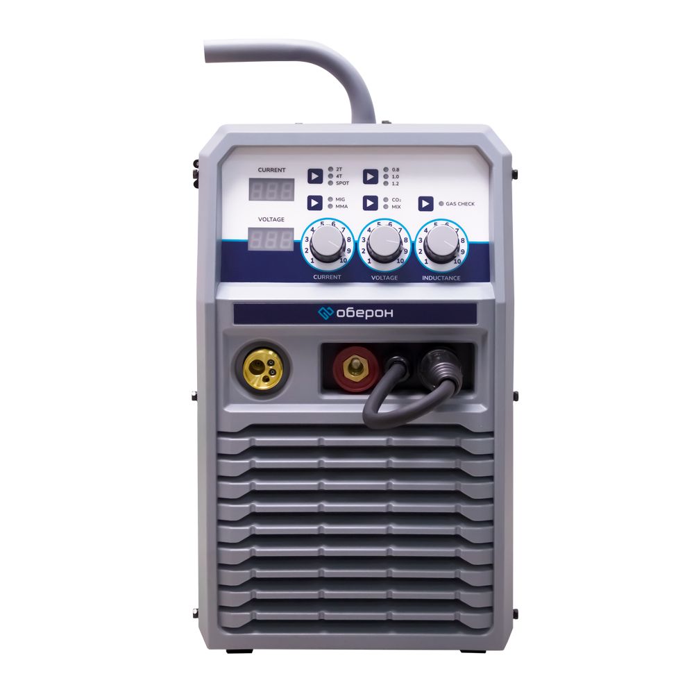 Сварочный аппарат Оберон MIG-315 предназначен для полуавтоматической сварки MIG/MAG. Он разработан, изготовлен и протестированы с учетом передовых инверторных технологий и повышенных требований к уровню безопасности. Отличительные особенности аппарата: Инверторная технология IGBT, частота до 28 КГц, уменьшенные габариты, меньший вес, более высокая эффективность и энергосбережение. Стабильное выходное напряжение и сильная устойчивость к колебаниям напряжения сети. Уникальная схема управления динамическими характеристиками сварки обеспечивает стабильную сварочную дугу, небольшое количество брызг, качественный сварочный шов и, следовательно, высокую эффективность сварки. Многофункциональная панель управления с возможностью регулировок силы сварочного тока, сварочного напряжения, индуктивности и других параметров сварочного процесса. Режимы полуавтоматической сварки в среде защитного газа MIG/MAG и ручной дуговой сварки MMA. 2Т/4Т режимы работы сварочной горелки для сварки коротких или длинных швов. В качестве защитного газа могут использоваться инертные (Ar), активные газы (CO2) и сварочные смеси (Ar + CO2) для дуговой сварки плавящимся электродом в защитном газе (MIG/MAG). Состав защитного газа может быть следующим: 100% CO2, 80%Ar + 20%CO2, и 98%Ar +2%CO2. Подходит для сварки низкоуглеродистой стали, нержавеющей стали и их сплавов. Подходит для сварки сплошной проволокой и порошковой проволокой. Размер подающего ролика - 30*22*10 мм. Стандартная комплектация: Сварочный аппарат - 1 шт. Инструкция по эксплуатации - 1 шт. Сварочная горелка MW-24, 3м - 1 шт. Клемма заземления с кабелем, 3 м - 1 шт. Электрододержатель с кабелем, 3м - 1 шт.