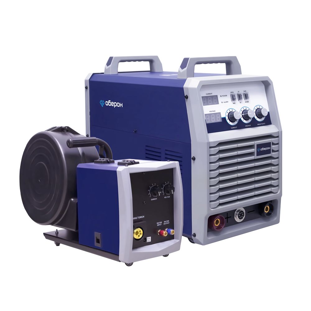 Сварочный аппарат Оберон MIG-500 предназначен для полуавтоматической сварки MIG/MAG. Он разработан, изготовлен и протестированы с учетом передовых инверторных технологий и повышенных требований к уровню безопасности. Аппарат имеет подающий механизм выносного типа, что позволяет увеличить производительность и сократить время работы сварщика. Отличительные особенности аппарата: Инверторная технология IGBT, частота до 28 КГц, уменьшенные габариты, меньший вес, более высокая эффективность и энергосбережение. Стабильное выходное напряжение и сильная устойчивость к колебаниям напряжения сети. Уникальная схема управления динамическими характеристиками сварки обеспечивает стабильную сварочную дугу, небольшое количество брызг, качественный сварочный шов и, следовательно, высокую эффективность сварки. Многофункциональная панель управления с возможностью регулировок силы сварочного тока, сварочного напряжения, индуктивности и других параметров сварочного процесса. Режимы полуавтоматической сварки в среде защитного газа MIG/MAG и ручной дуговой сварки MMA. 2Т/4Т режимы работы сварочной горелки для сварки коротких или длинных швов. В качестве защитного газа могут использоваться инертные (Ar), активные газы (CO2) и сварочные смеси (Ar + CO2) для дуговой сварки плавящимся электродом в защитном газе (MIG/MAG). Состав защитного газа может быть следующим: 100% CO2, 80%Ar + 20%CO2, и 98%Ar +2%CO2. Подходит для сварки низкоуглеродистой стали, нержавеющей стали и их сплавов. Подходит для сварки сплошной проволокой и порошковой проволокой. Стандартная комплектация: Сварочный аппарат - 1 шт.; Выносной подающий механизм - 1 шт.; Инструкция по эксплуатации - 1 шт.; Сварочная горелка MW-36 3м - 1 шт; Кабель управленния 5м - 1 шт; Клемма заземления с кабелем 3м - 1 шт; Электрододержатель с кабелем 3м - 1 шт.