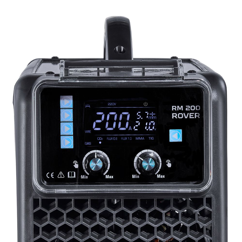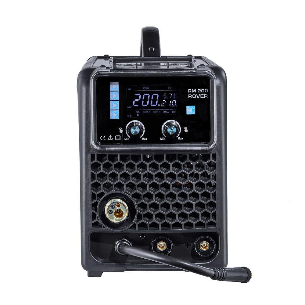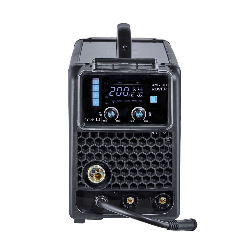 Сварочный полуавтомат RM 200 Rover создан для полуавтоматической сварки MIG/MAG, используя самые современные инверторные технологии. Аппарат имеет режимы ручной дуговой сварки MMA и аргонодуговой сварки TIG Lift. Он оснащен ярким и функциональным LED-экраном и синергетическим управлением, что обеспечивает простоту и удобство в работе. Основные особенности и функции: Удобное управление: яркий жк-дисплей показывает всю необходимую информацию для настройки и контроля процесса сварки. На экране отображаются ток, напряжение, тип проволоки, режимы работы, системные уведомления. Синергетическое управление сварочным процессом. Регулировка параметров сварки в соответствии с различными заготовками и технологией сварки. Аппарат способен работать в режимах полуавтоматической сварки MIG/MAG, ручной дуговой сварки MMA и аргонодуговой сварки TIG Lift, что делает его универсальным инструментом для различных видов работ. Непрерывная и стабильная работа при малом токе, особенно подходит для сварки листов из низкоуглеродистой стали, легированной стали и нержавеющей стали. 2Т/4Т режимы работы сварочной горелки. Двухтактный режим подходит для вспомогательных работ, коротких сварных швов. Четырехтактный режим подходит для более длинных сварных швов. Функция VRD снижает напряжение холостого хода до уровня ниже 36 В для безопасности сварщика, который может случайно коснуться электрода во время сварки. Стандартная комплектация: Сварочный полуавтомат - 1 шт.; Инструкция по эксплуатации - 1 шт.; Клемма заземления с кабелем 300А / 1,4м - 1 шт.; Электрододержатель с кабелем 300А / 1,6м - 1шт. Сварочная горелка MIG 15AK, 3 м - 1шт.