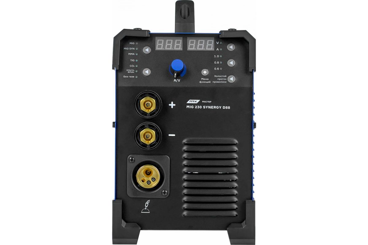 ПТК МАСТЕР MIG 230 SYNERGY D88 — современный сварочный цифровой полуавтомат для сварки в среде защитных газов с синергетикой. Аппарат оснащен дополнительной функцией ручной дуговой сварки MMA и аргонодуговой сварки в среде защитных газов Lift TIG.