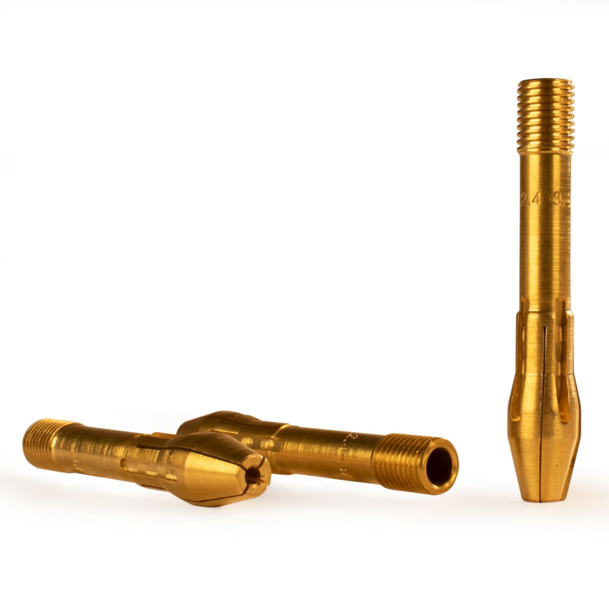 Цанга - приспособление для фиксации вольфрамового электрода в горелке. На цанге имеются прорези, которые помогают закрепить в зажимных кулачках электрод, за счёт осевого усилия. Цанги производства группы компаний «Аврора» имеют повышенный запас прочности и коррозийной устойчивости.